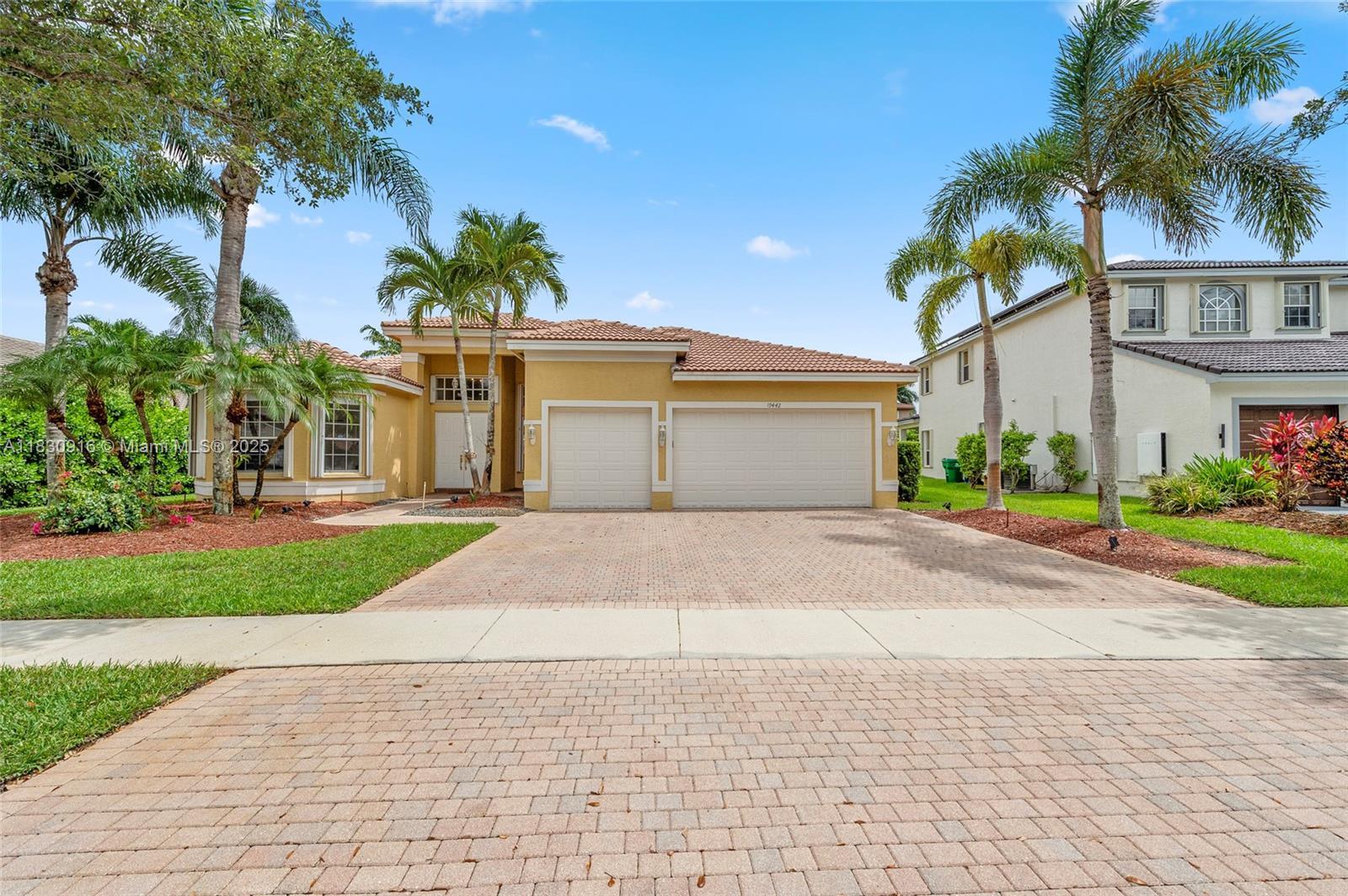 Experience resort-style living in the prestigious Isles of Sunset Lakes. This beautifully maintained 5 bed / 3 bath home offers a spacious single-story layout designed for comfort and elegance. Features include his & her bathrooms with a pass-through shower, walk-in closets, and a chef’s kitchen with double ovens. Bright, open living spaces flow seamlessly to the outdoor covered patio, lush landscaping, and a private pool—perfect for year-round enjoyment. Enjoy peace of mind in this gated community with a clubhouse, fitness center, playgrounds, and more.