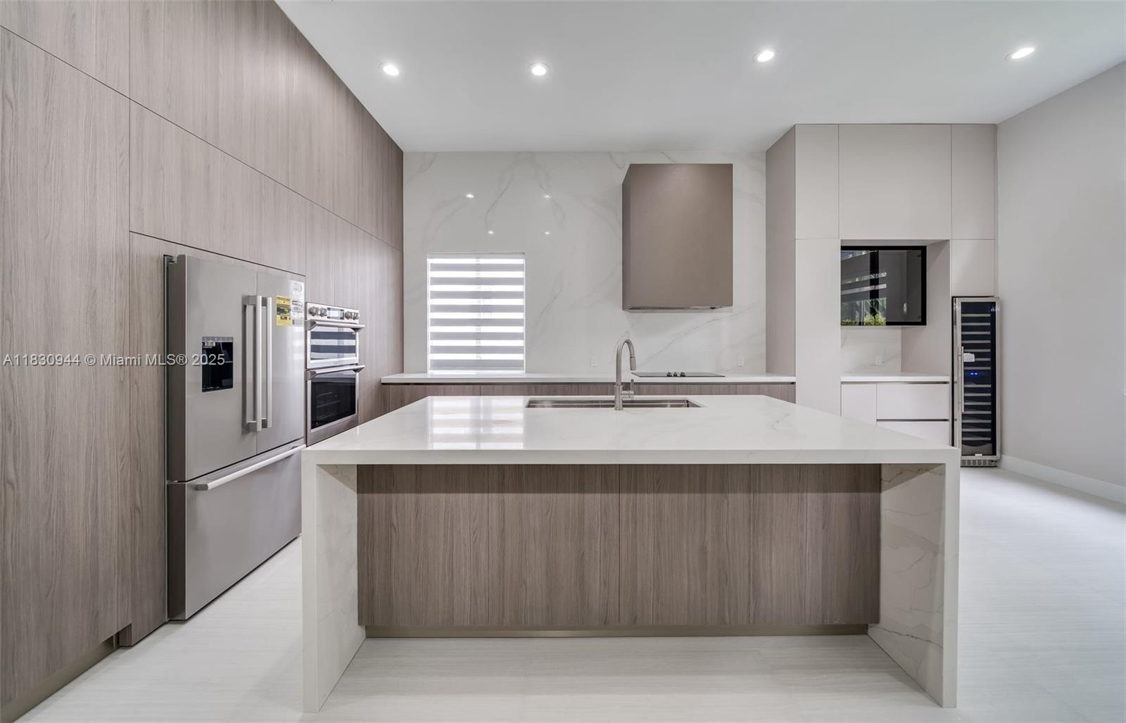 Welcome to your brand new dream home! This stunning one-story residence offers 4 spacious bedrooms and 3.5 luxurious bathrooms, fully and thoughtfully remodeled with no detail overlooked. Step inside and enjoy bright, open living spaces enhanced by elegant paneling and sleek hidden modern doors, creating a seamless and sophisticated aesthetic throughout. The designer kitchen features a stunning island, custom cabinetry, and an impressive coffee bar and wine station complete with a wine cooler, perfect for entertaining. The serene primary suite offers a spa-inspired bathroom and generous walk-in closet, while spacious guest suites ensure comfort for family and friends. Move-in ready and truly one-of-a-kind — this home embodies luxury, functionality, and modern elegance.