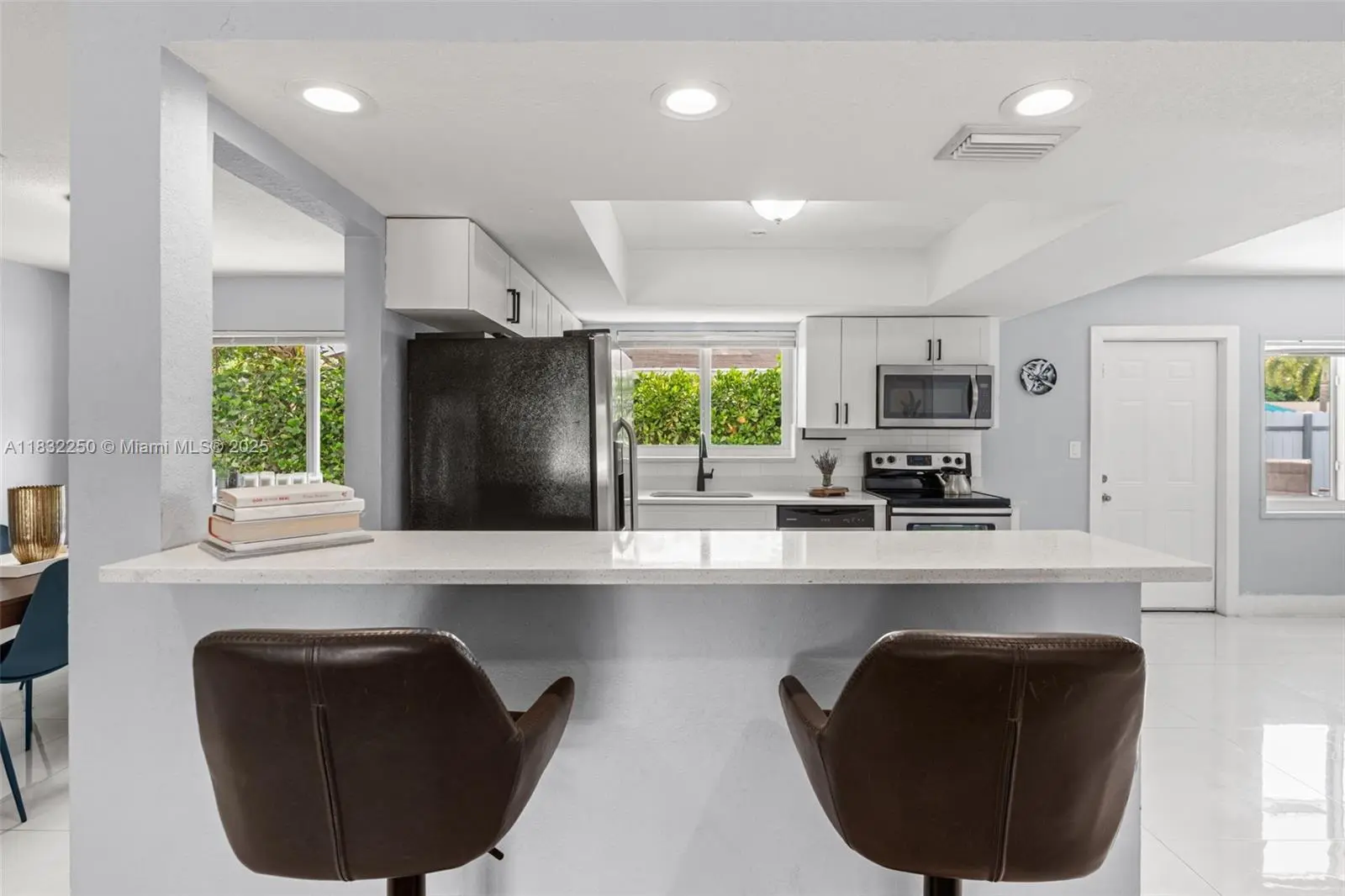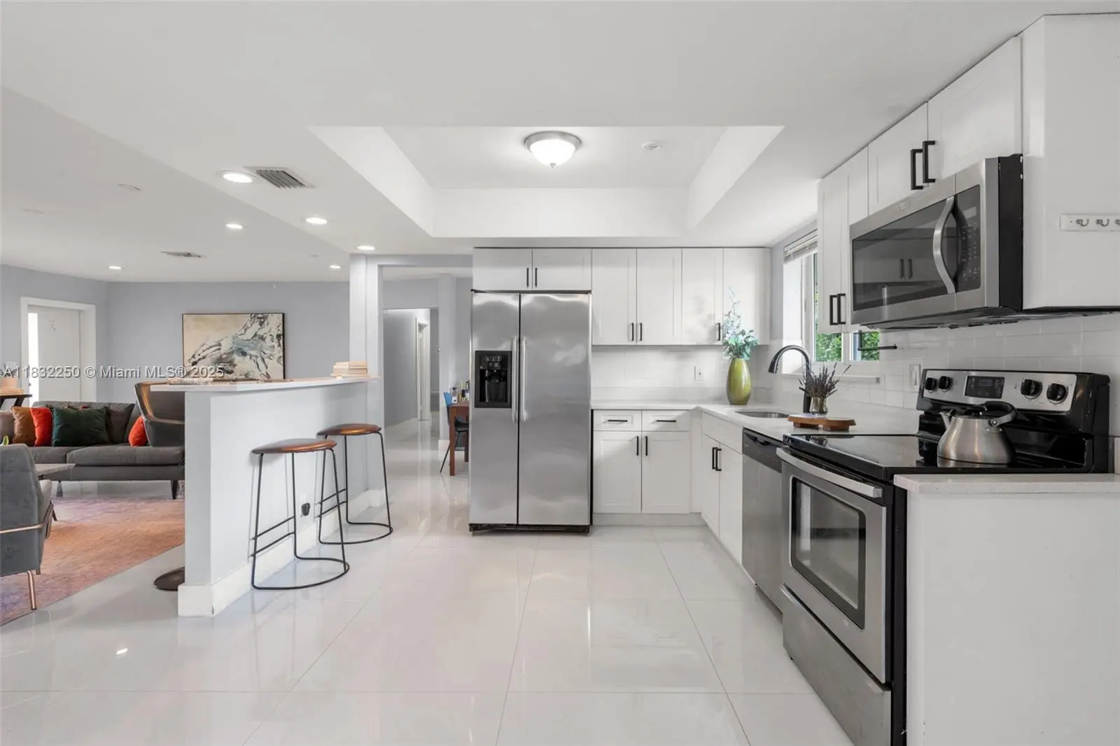 Fully renovated 4 bed, 3 bath home in corner lot in Wilton Manors. Spacious and bright! 36' x 36' tile throughout. Great for entertaining, with formal and informal dining spaces. Glass enclosed showers in bathrooms. Recessed LED lighting in living room and kitchen bar. All impact windows throughout. The fourth bedroom can be used as an office or den with private street entrance off the kitchen, and 3rd bathroom in the 2-car garage. Beautiful outdoor living space with yard, built-in grill in outside patio, with plenty of additional space for entertaining. Home is great for an investor who wants to transform to a stylish income earning duplex with 2 separate entrances and ample parking including 2 car garage!