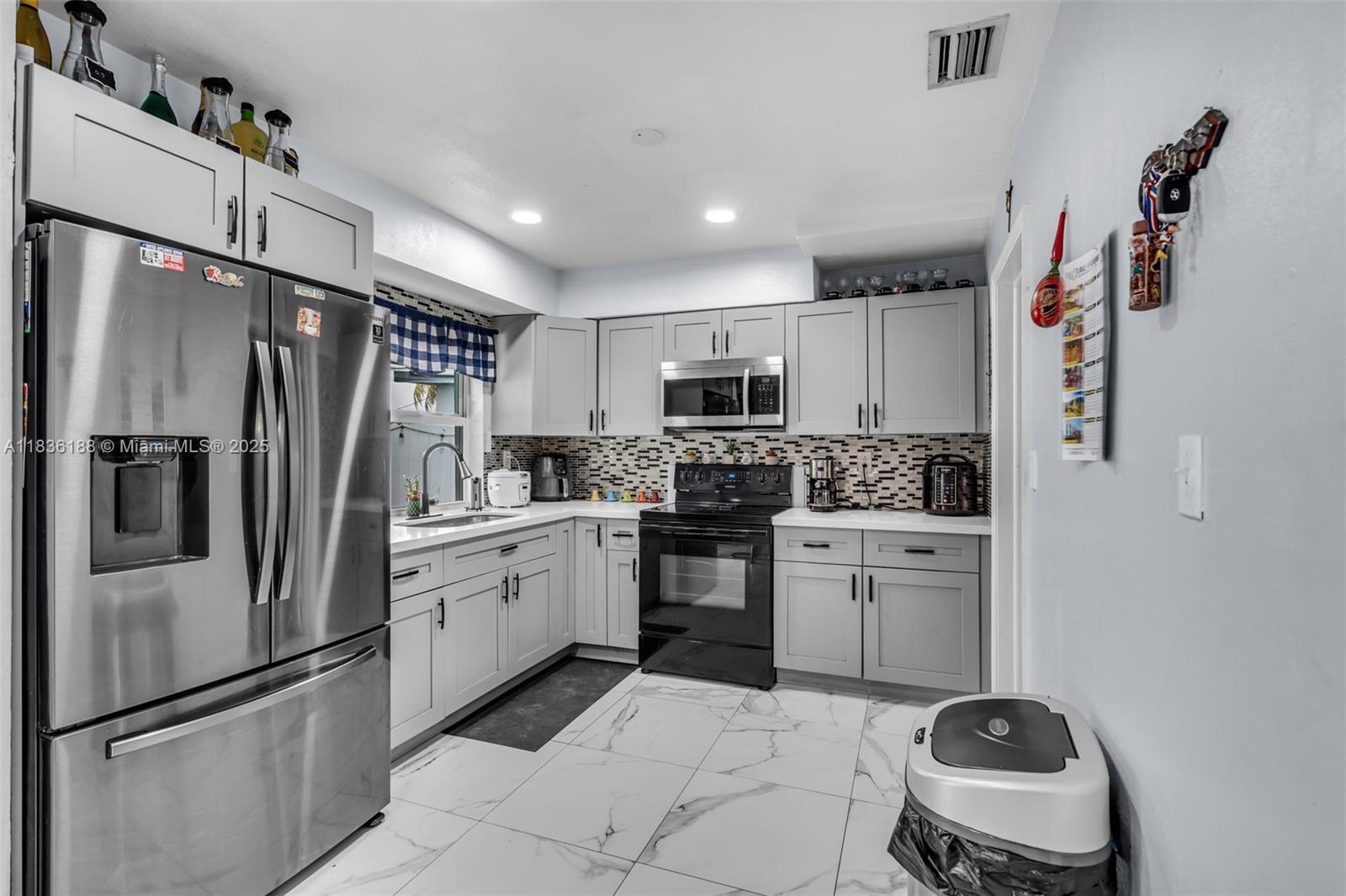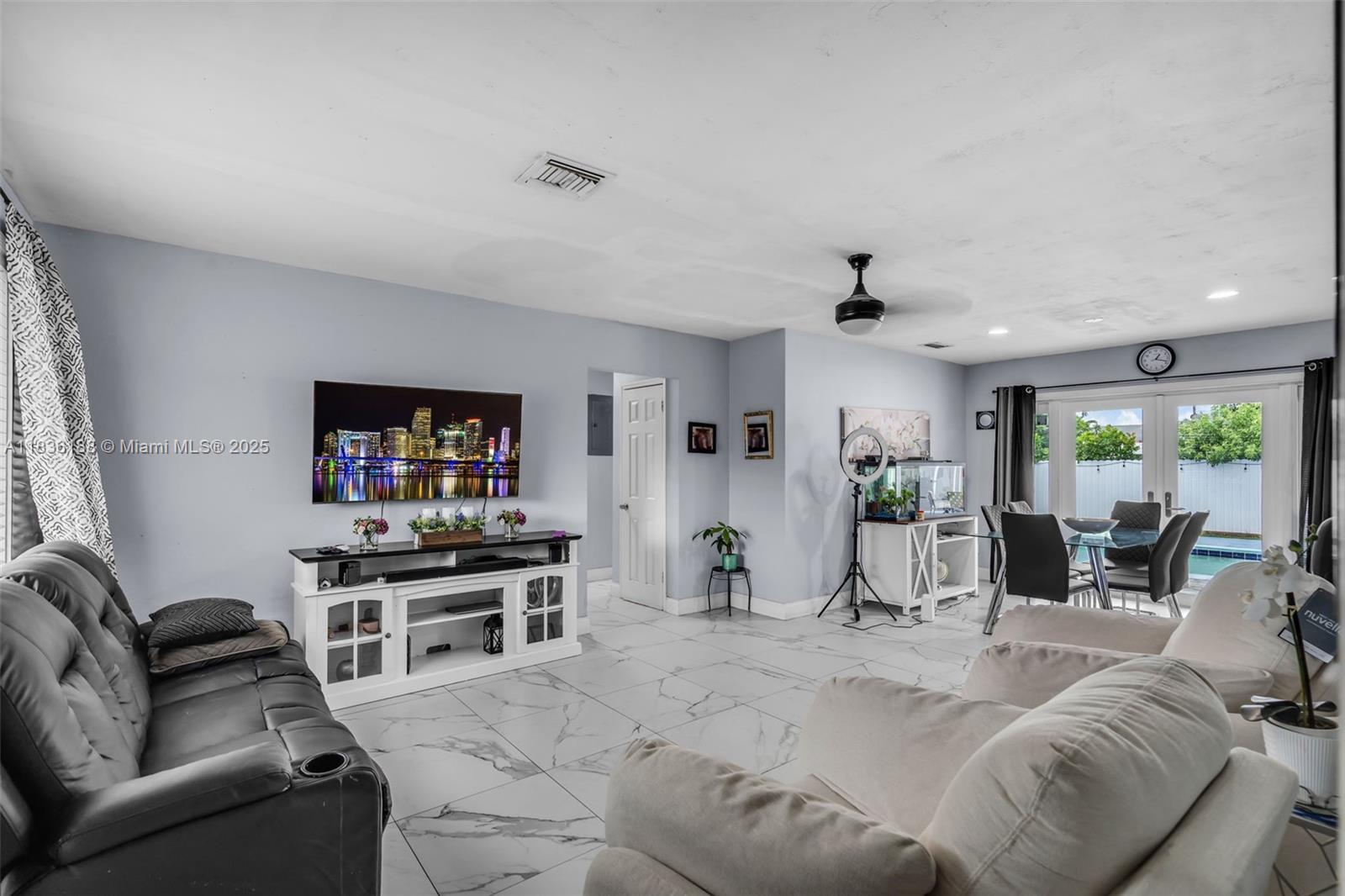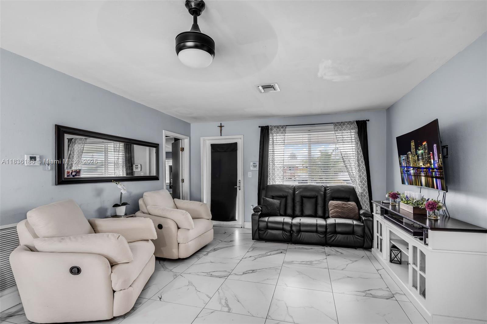 Remodeled property in the heart of Miramar! This beautiful home features a brand-new modern kitchen, elegant white flooring, and impact windows for added safety and energy efficiency. It also includes an extra room with a private entrance—perfect for income potential or guest use. The outdoor area is ideal for entertaining, with a sparkling pool, paved patio, and stylish metal fencing offering both privacy and charm. A great opportunity for living or investment!