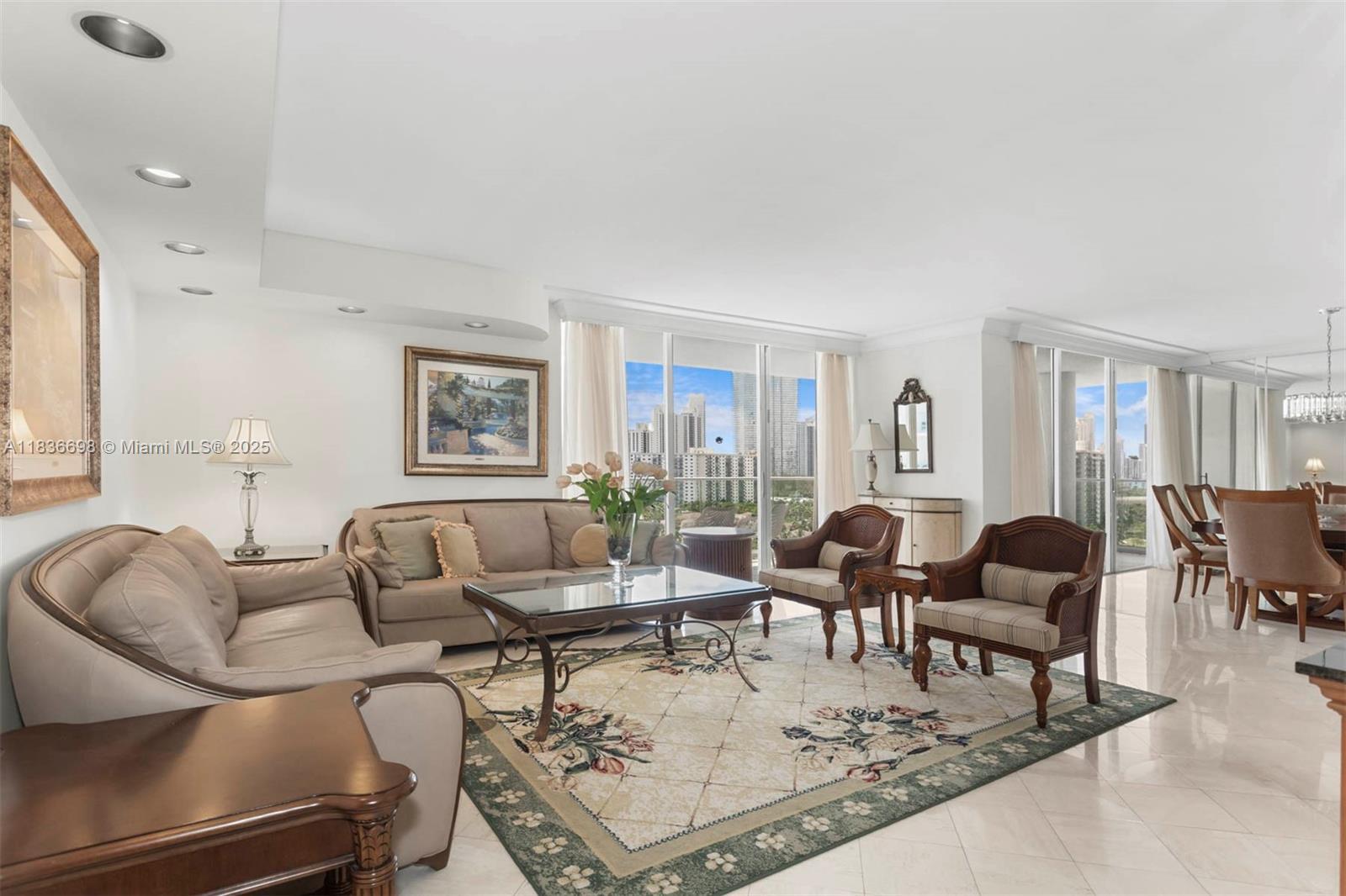 BEST PRICED OCEAN CORNER in TURNBERRY..Opportunity knocks! SPECTACULAR ocean, intracoastal and golf views. Enjoy 1825 sq ft of this spacious corner unit, wrap around terrace. NEW BATHROOMS, RENOVATED kitchen, enormous closets. Luxury amenities, 24 hour valet, security, glamorous pool and spa, fitness. Close to beaches, great restaurants, shopping, golf and much more.. Easy to show...NO SATURDAYS