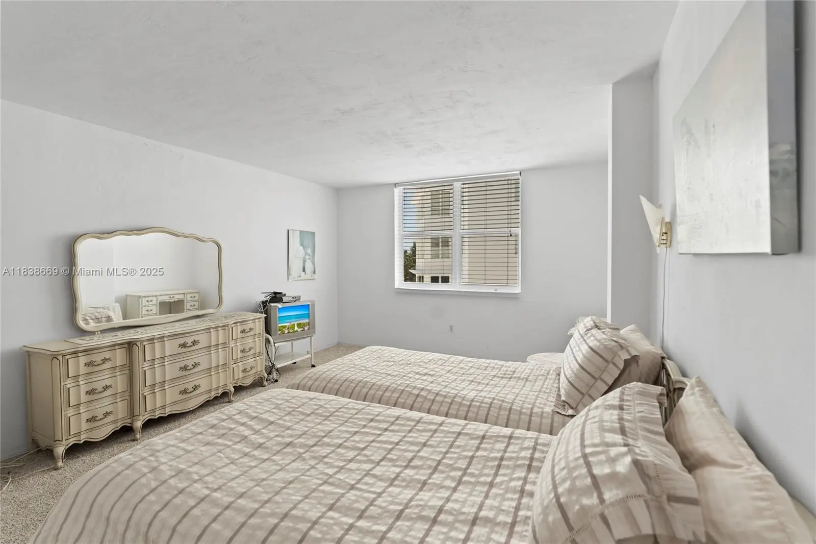 Wake up to panoramic views of the ocean, creek and pool from this generously sized furnished 1-bedroom, 2-bathroom condo at the Carriage Club South. The bright, open floor plan includes a balcony, an eat-in kitchen, dining area, and a spacious living room—perfect for relaxing or entertaining. With tile and carpet flooring, this sunlit south facing unit is a great opportunity for both investors and end-users seeking coastal living. Nestled in the heart of Miami Beach's renowned Millionaire’s Row, the Carriage Club South provides premium amenities, including a 24-hour concierge, heated pool, gym, BBQ area, beach service, and on-site restaurant. Minutes from Fontainebleau, Soho Beach House, and the Faena District, this prime location has it all. Click the virtual tour link to view the video.