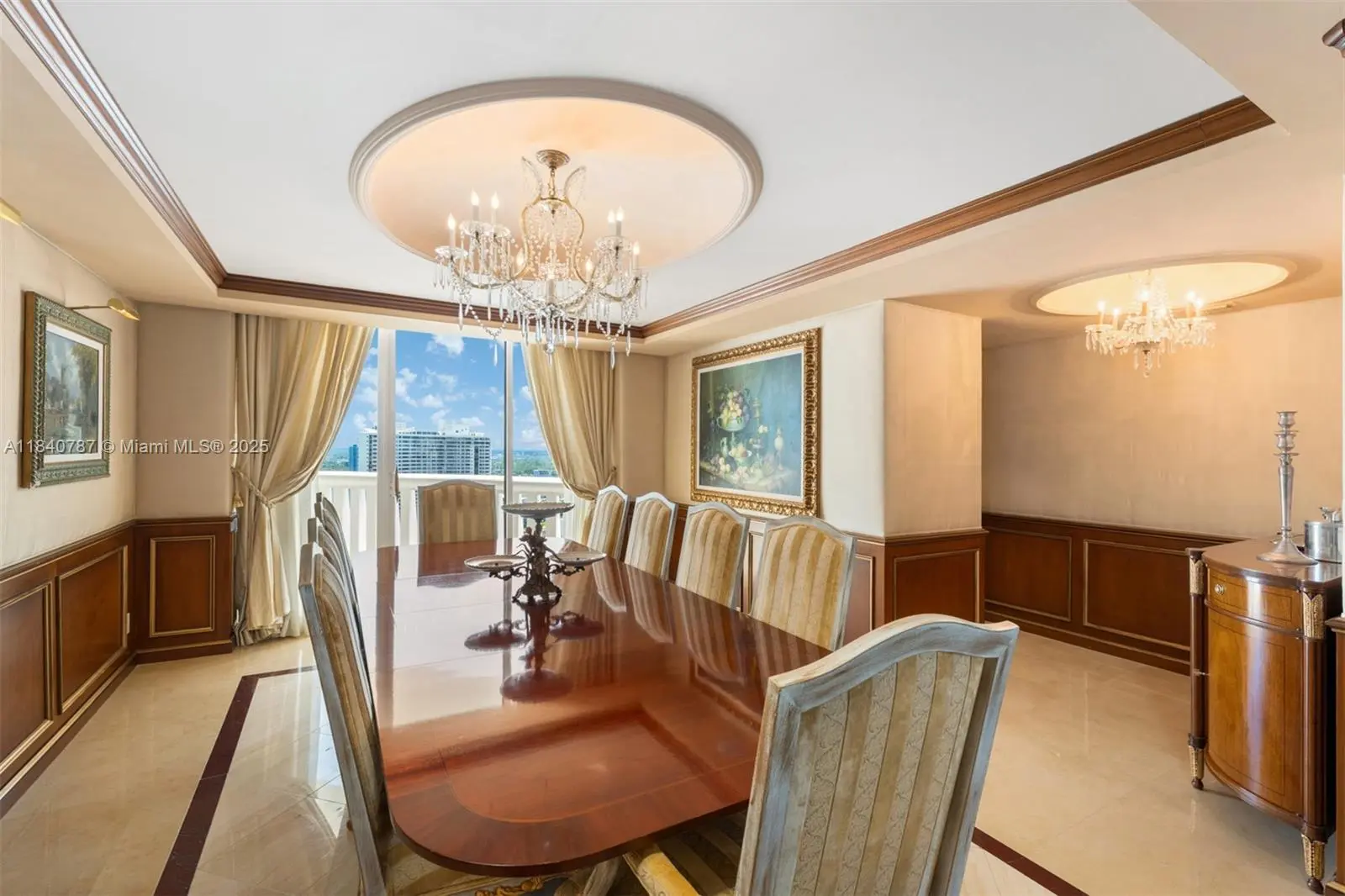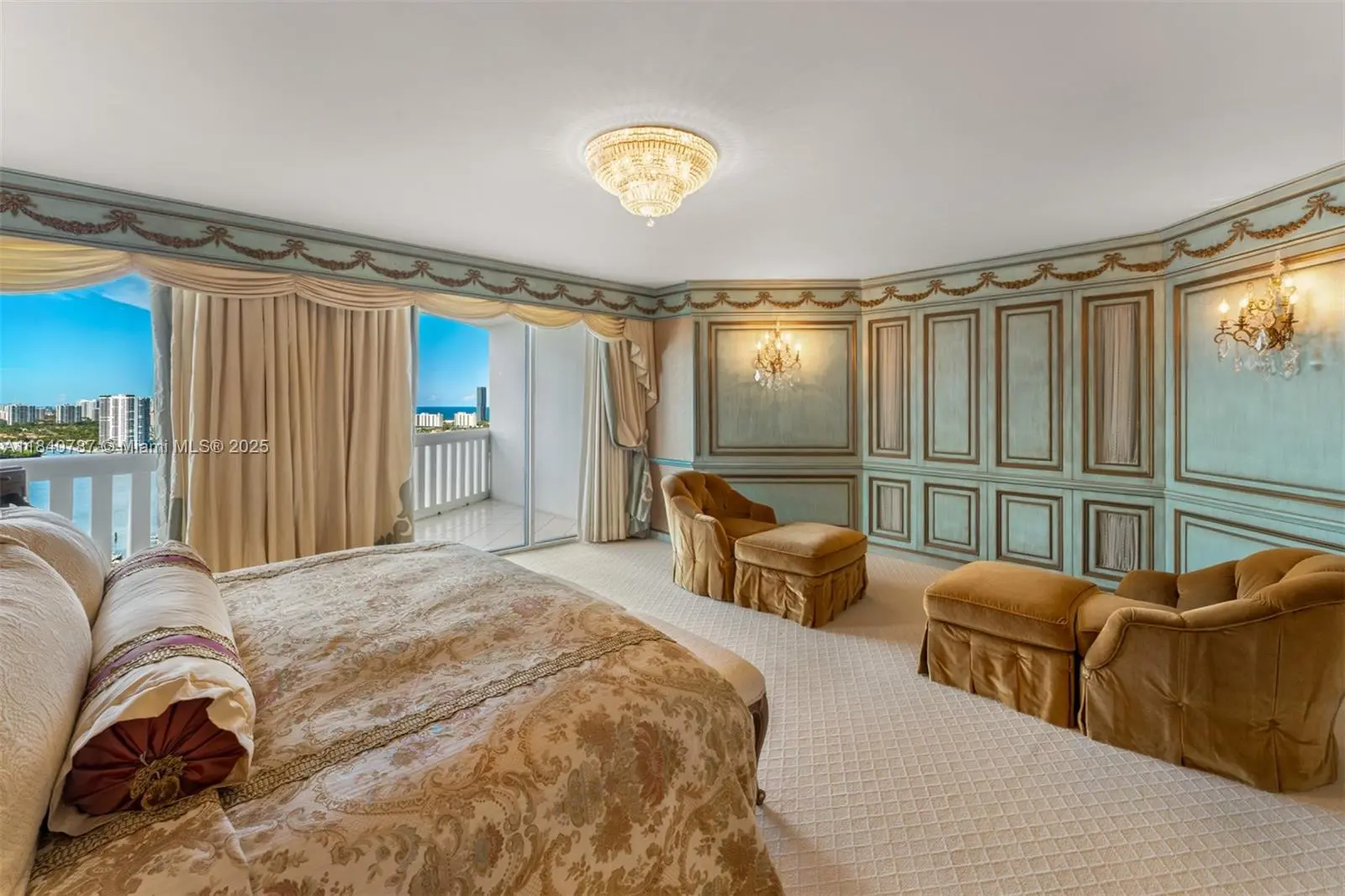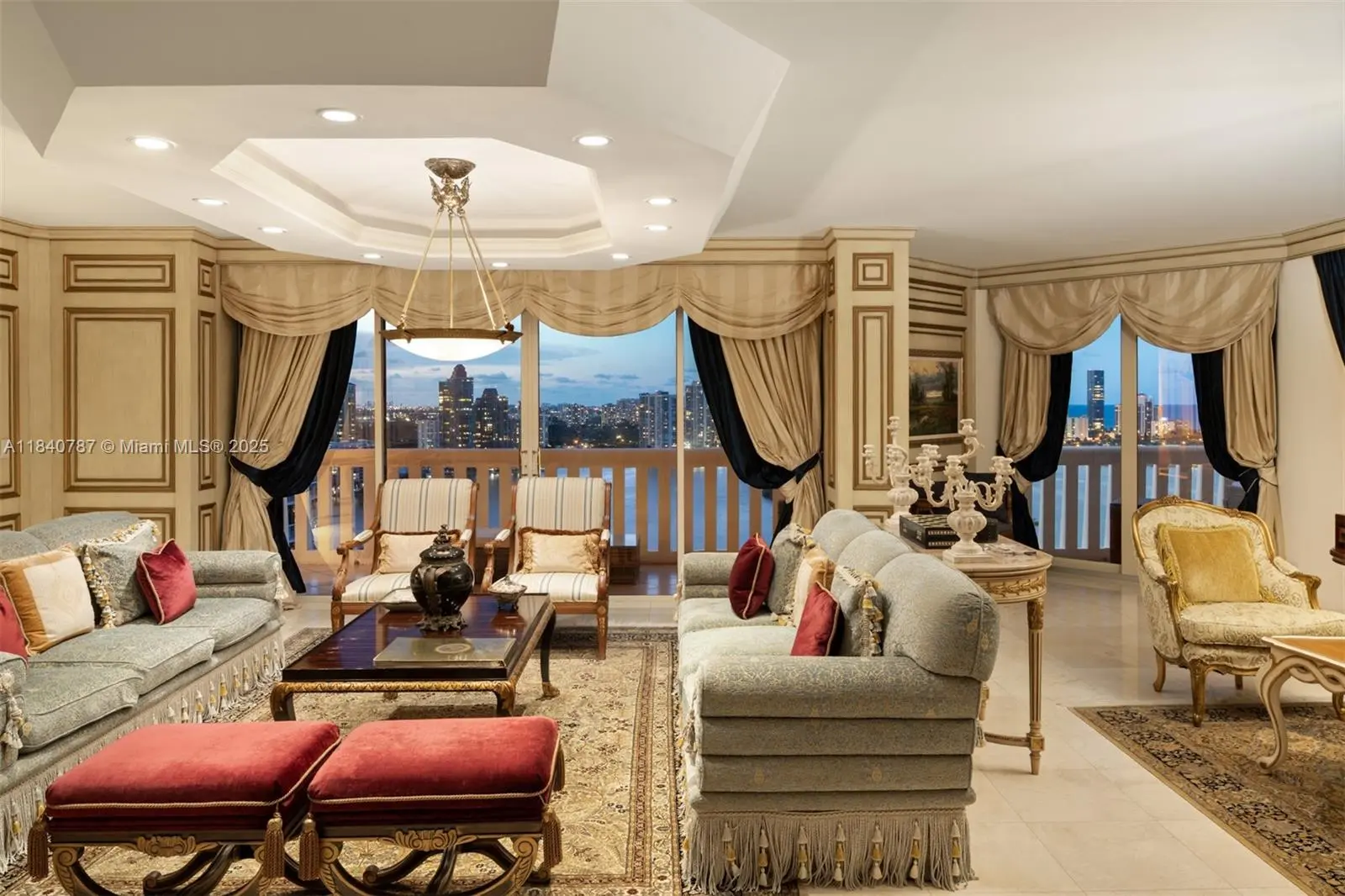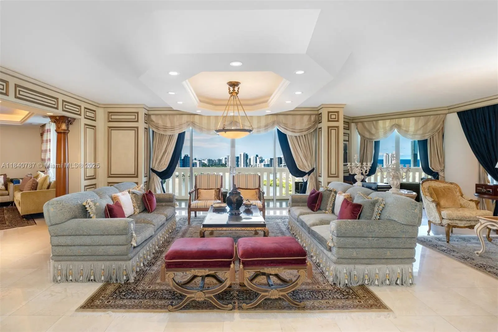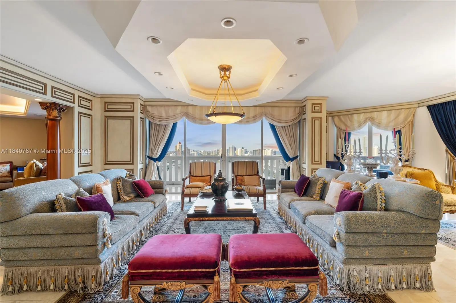 Residence 2902 at Williams Island. A fragment of Buckingham Palace rising above Miami — order, proportion, and tranquility. Everything here is handcrafted; nothing is generic or improvised. The entrance opens into a classical sequence of spaces: reception hall, formal dining room, music or reading lounge, private study, and an intimate kitchen designed for conversation. The wine cellar preserves memory and ritual. The primary suite, regal in scale, ensures silence and privacy; the remaining areas flow with balanced continuity, creating an atmosphere ideal for both living and entertaining. By day, the residence is bright and precise; by night, it becomes ceremonial and serene. A panoramic view of roughly 180° accompanies rather than competes — the focus remains on craftsmanship and the harmony of a grand home elevated in the sky. 2902 makes no display: it quietly asserts class in every detail and is ready to live in, flawlessly complete. Fully furnish price of $4,450,000