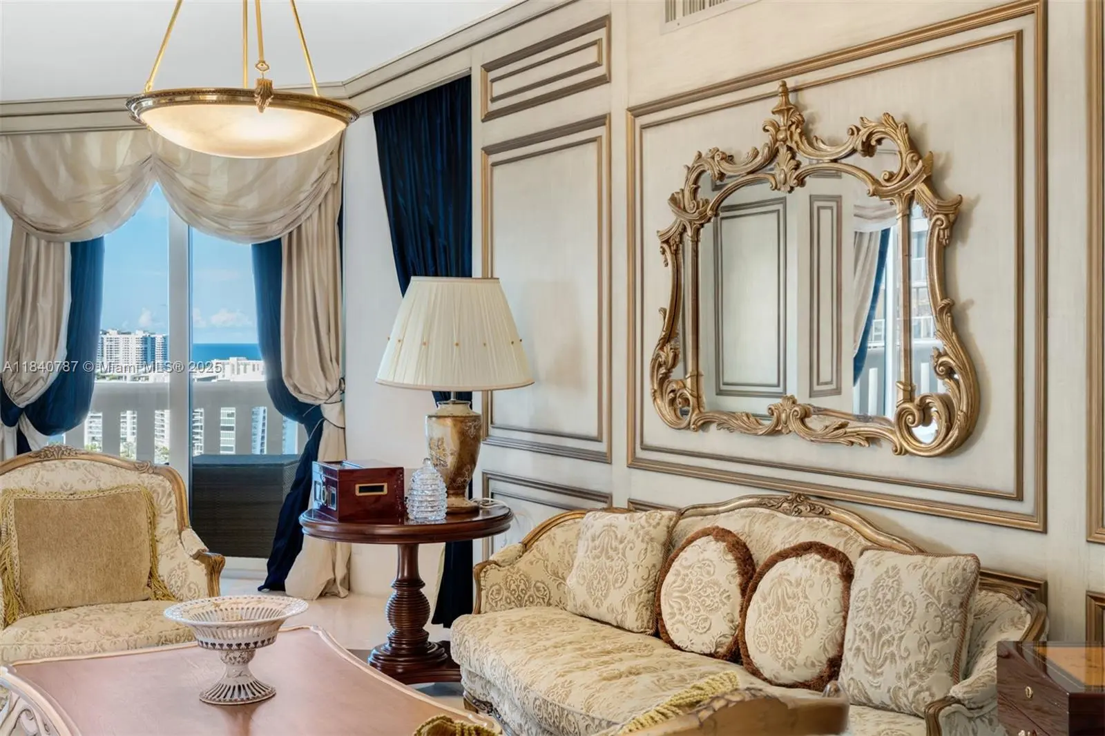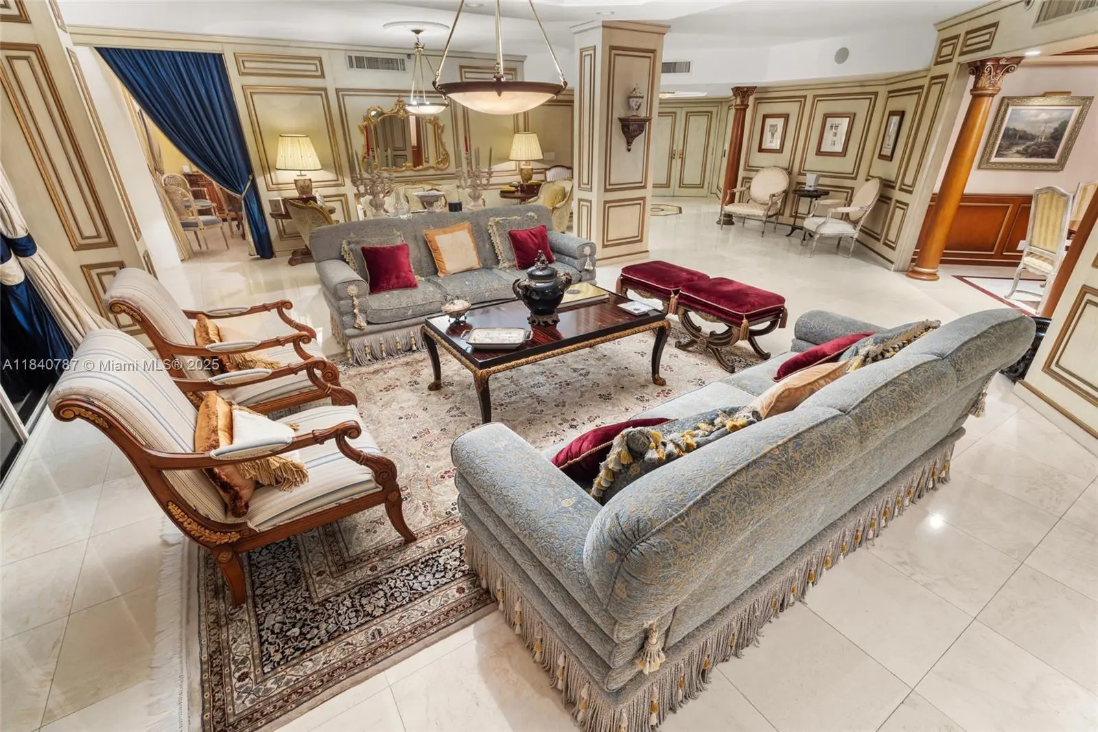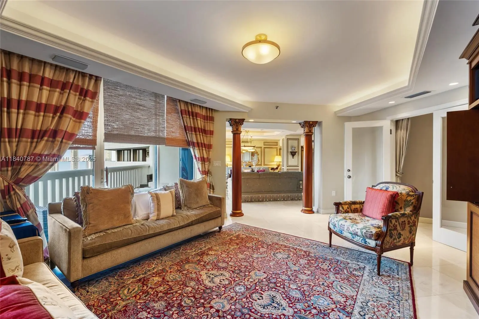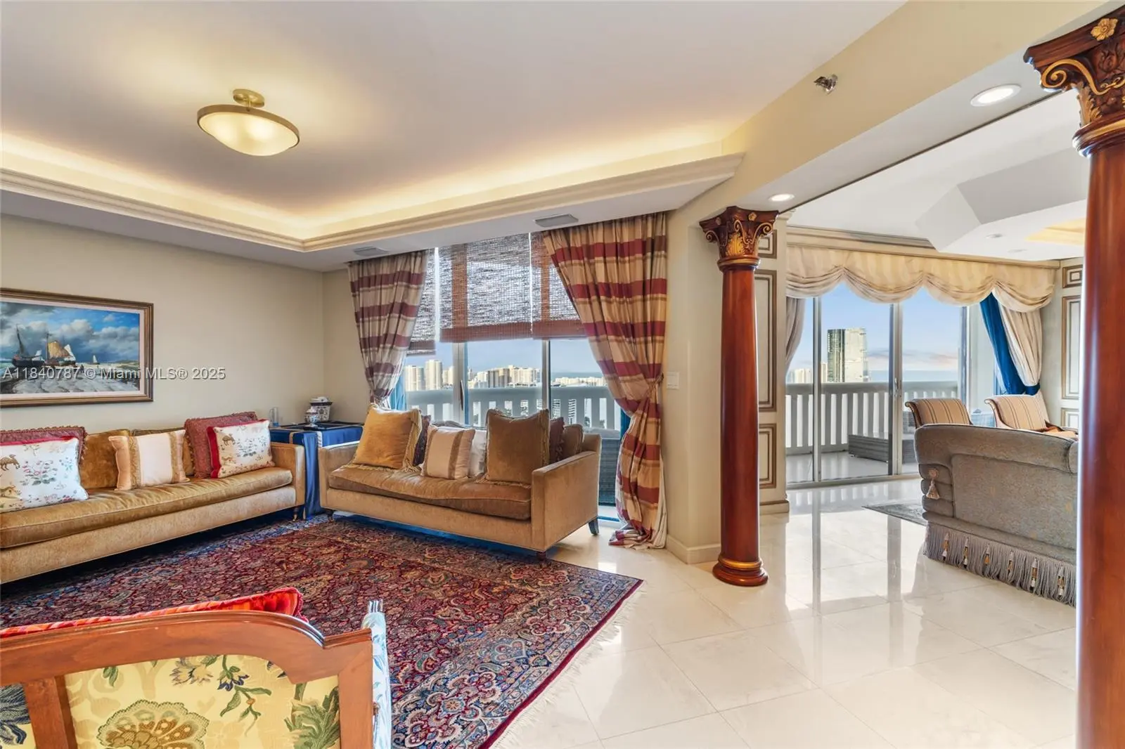 Residence 2902 at Williams Island. A fragment of Buckingham Palace rising above Miami — order, proportion, and tranquility. Everything here is handcrafted; nothing is generic or improvised. The entrance opens into a classical sequence of spaces: reception hall, formal dining room, music or reading lounge, private study, and an intimate kitchen designed for conversation. The wine cellar preserves memory and ritual. The primary suite, regal in scale, ensures silence and privacy; the remaining areas flow with balanced continuity, creating an atmosphere ideal for both living and entertaining. By day, the residence is bright and precise; by night, it becomes ceremonial and serene. A panoramic view of roughly 180° accompanies rather than competes — the focus remains on craftsmanship and the harmony of a grand home elevated in the sky. 2902 makes no display: it quietly asserts class in every detail and is ready to live in, flawlessly complete. Fully furnish price of $4,450,000