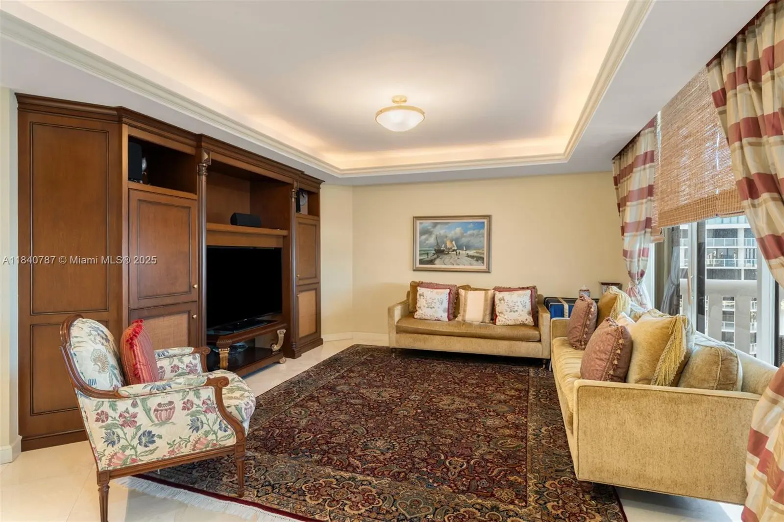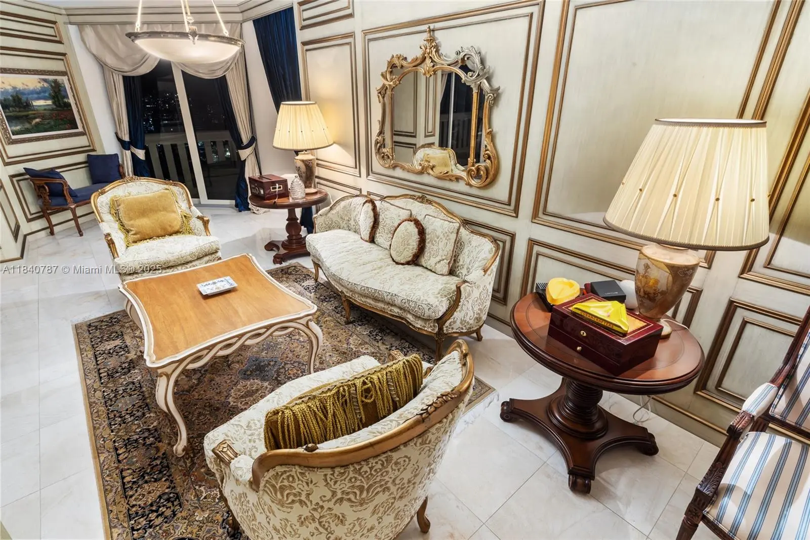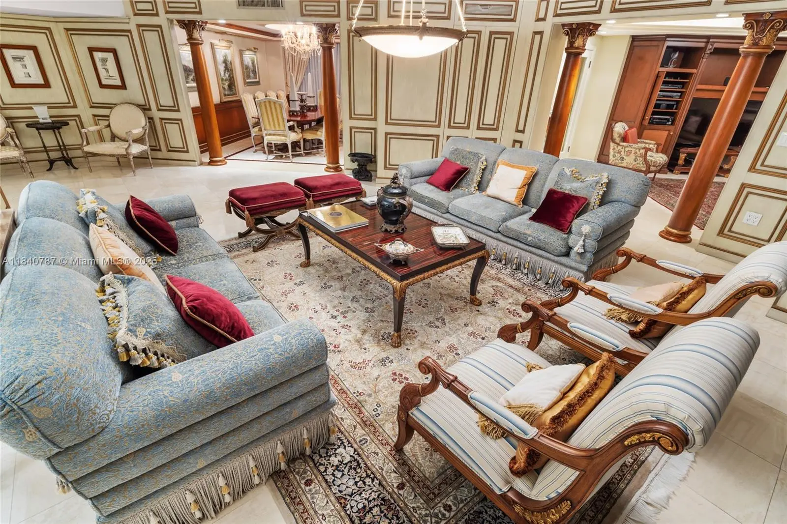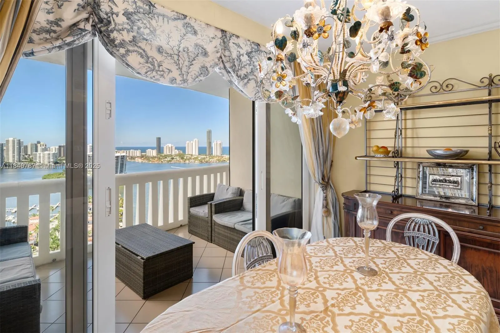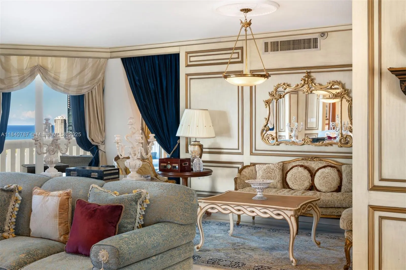 Residence 2902 at Williams Island. A fragment of Buckingham Palace rising above Miami — order, proportion, and tranquility. Everything here is handcrafted; nothing is generic or improvised. The entrance opens into a classical sequence of spaces: reception hall, formal dining room, music or reading lounge, private study, and an intimate kitchen designed for conversation. The wine cellar preserves memory and ritual. The primary suite, regal in scale, ensures silence and privacy; the remaining areas flow with balanced continuity, creating an atmosphere ideal for both living and entertaining. By day, the residence is bright and precise; by night, it becomes ceremonial and serene. A panoramic view of roughly 180° accompanies rather than competes — the focus remains on craftsmanship and the harmony of a grand home elevated in the sky. 2902 makes no display: it quietly asserts class in every detail and is ready to live in, flawlessly complete. Fully furnish price of $4,450,000