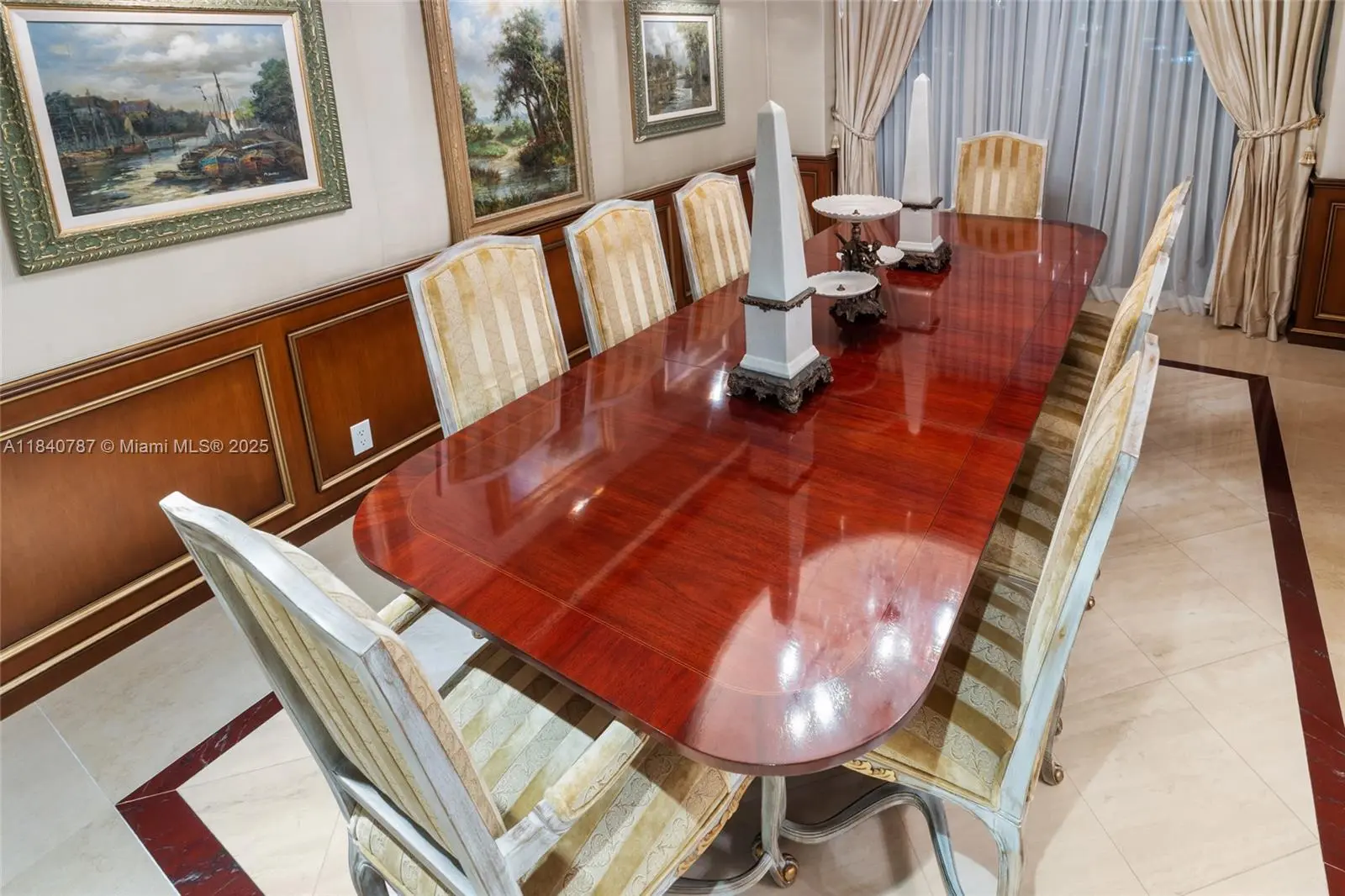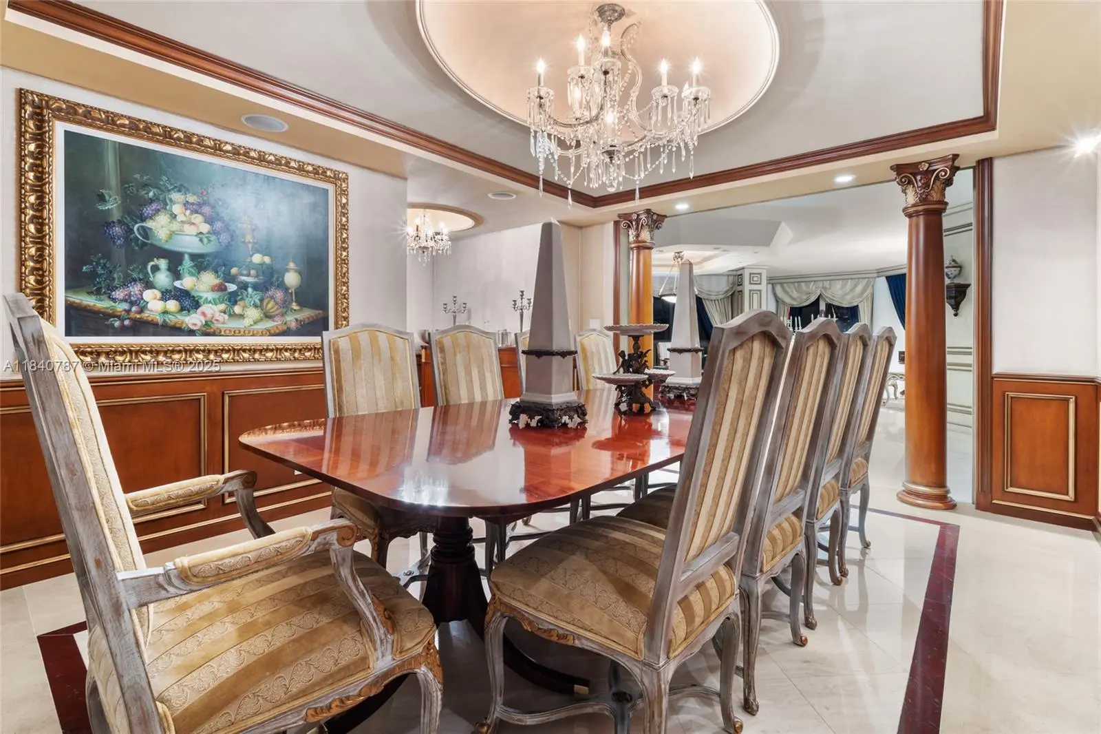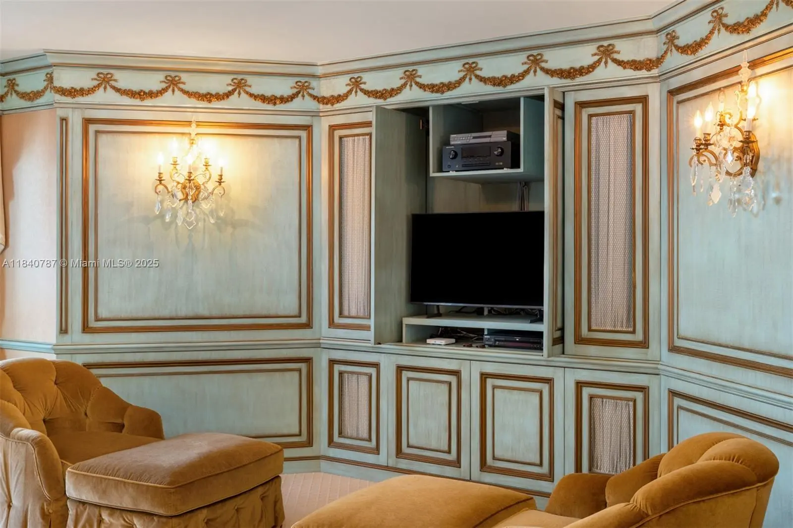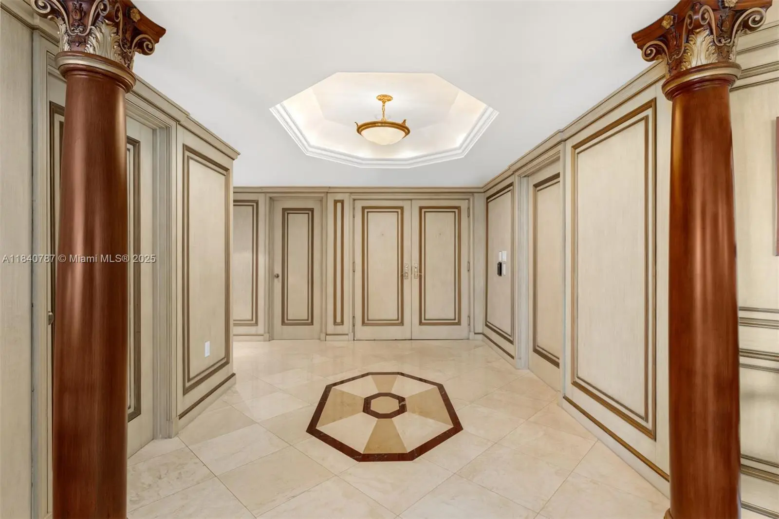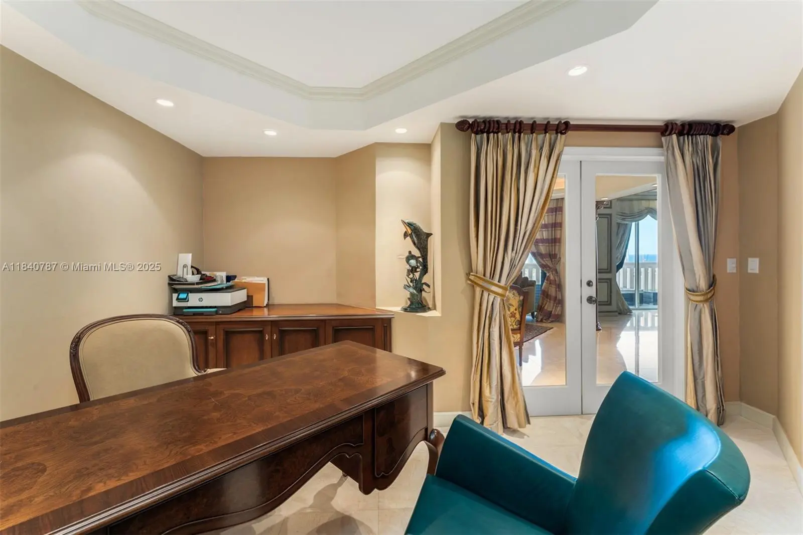 Residence 2902 at Williams Island. A fragment of Buckingham Palace rising above Miami — order, proportion, and tranquility. Everything here is handcrafted; nothing is generic or improvised. The entrance opens into a classical sequence of spaces: reception hall, formal dining room, music or reading lounge, private study, and an intimate kitchen designed for conversation. The wine cellar preserves memory and ritual. The primary suite, regal in scale, ensures silence and privacy; the remaining areas flow with balanced continuity, creating an atmosphere ideal for both living and entertaining. By day, the residence is bright and precise; by night, it becomes ceremonial and serene. A panoramic view of roughly 180° accompanies rather than competes — the focus remains on craftsmanship and the harmony of a grand home elevated in the sky. 2902 makes no display: it quietly asserts class in every detail and is ready to live in, flawlessly complete. Fully furnish price of $4,450,000