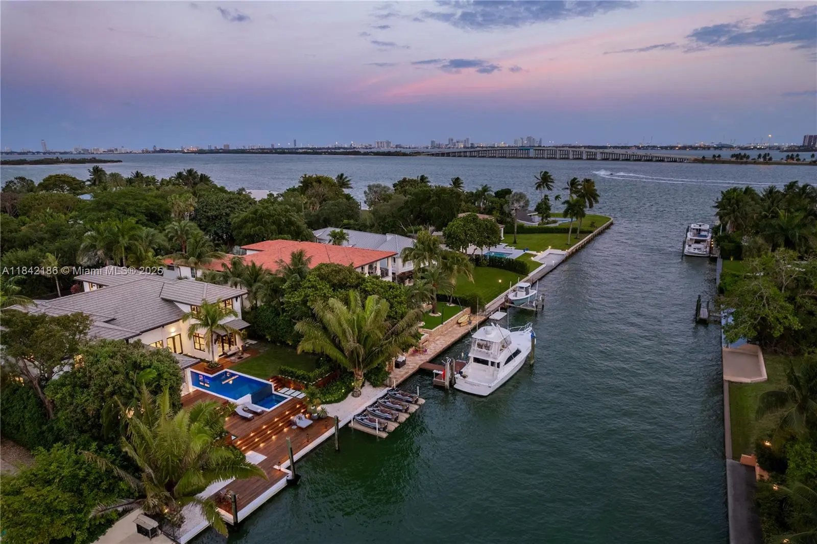 CASA EXUMAS – A Boater's Dream and a true Miami lifestyle experience. Nestled in the exclusive, gated community of Bay Point, this luxurious, modern tropical waterfront residence offers approx. 85 ft of water frontage, a private dock and direct access to Biscayne Bay. Enjoy high-end finishes, including spacious living room with 25-foot ceilings, sleek fireplace, formal dining room with wine cellar, family room, & gourmet kitchen. Six generous bedrooms feature private bathrooms and walk-in closets, including office and maid's quarters. Exteriors include a double-height, air-conditioned 3-car garage with car lift, 5-car motor court, infinity-edge pool, jacuzzi, summer kitchen, Ipe wood deck surrounded by tropical landscaping. Smart home system & generator. Private financing available.