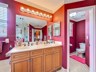 Welcome to this beautifully maintained 3 bedroom, 2.5-bath home in the prestigious gated community of Riviera Isles in Miramar. Situated on a peaceful street with east-facing backyard views, this two-story residence offers an ideal blend of comfort, functionality, and style. Step inside to soaring ceilings and a spacious open floor plan. The formal living and dining rooms flow seamlessly into a large kitchen with wood cabinetry, stainless steel appliances, and a convenient breakfast area. The adjoining family room opens to a private backyard. Upstairs, you’ll find a generously sized primary suite with walk-in closet and en-suite bath featuring dual vanities, a soaking tub, and a separate shower. 2 additional bedrooms share a well-appointed full bath.