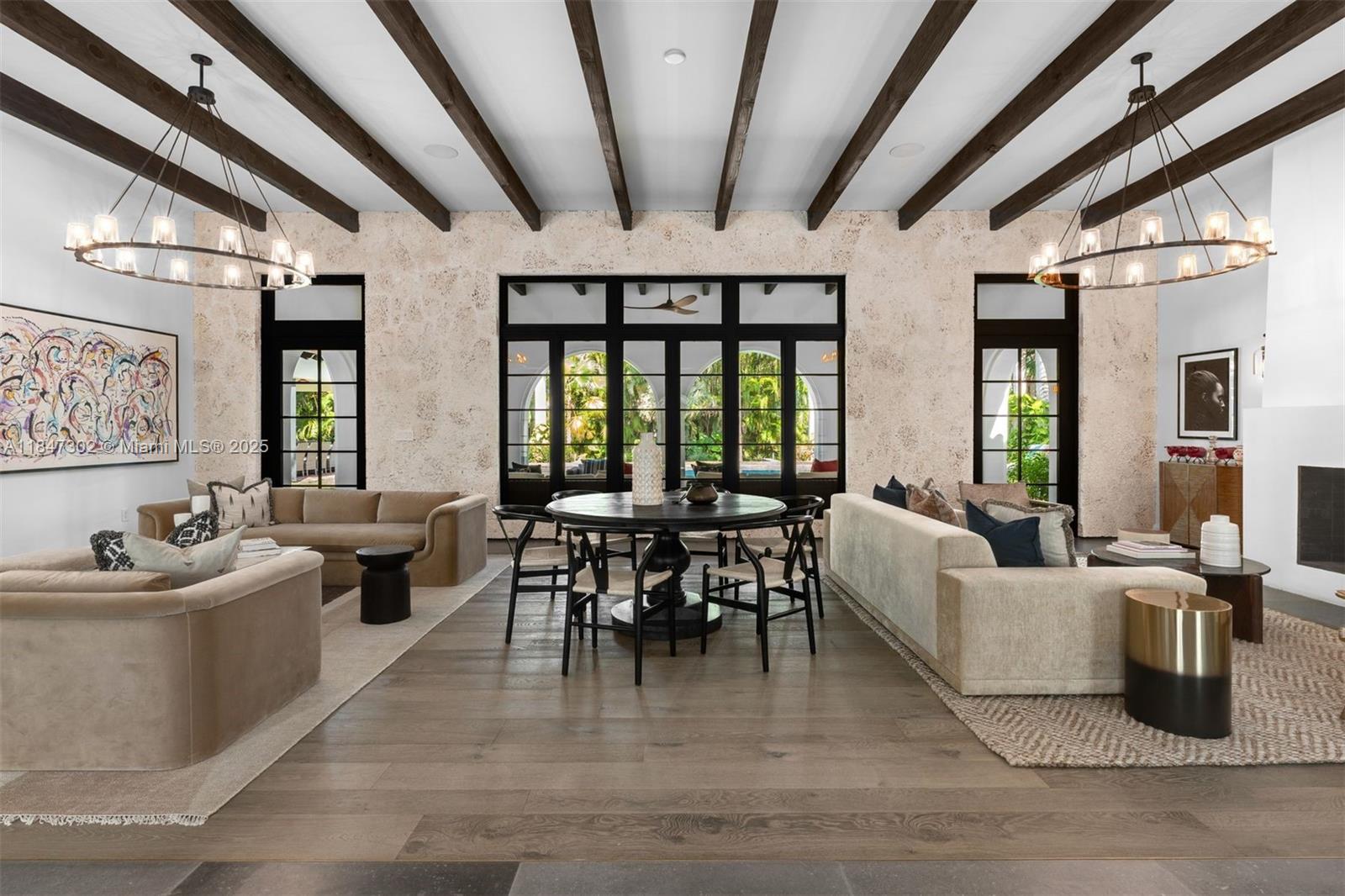 A one-of-a-kind Grand Classic Montecito Estate in Ponce Davis. Offering privacy, sophistication, and modern convenience, this 9,449 Sq Ft, 7BD 6BA home by architect Jenifer Briley and designer Deborah Houston boasts lush landscaping with mature trees and a front entrance courtyard. Inside are custom architectural details, reclaimed French oak floors, custom high-impact Marvin windows and Signature Doors, and a large fireplace, adding timeless charm. A chef’s kitchen features top-tier appliances, and the spacious principal suite offers a spa-like bath and custom walk-in closet. Outdoor spaces include a saltwater pool with jacuzzi, summer kitchen, and covered terraces with exposed wood beams. Smart home automation, a 3-car garage, and luxurious finishes complete this exceptional retreat.