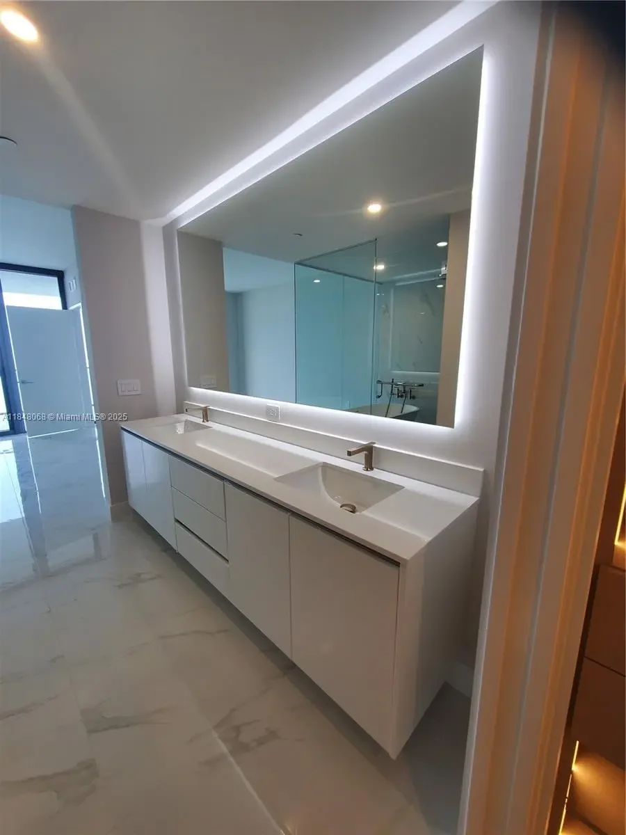 Water,water,water. Unbelievable views and luxury living in this brand-new, never-lived-in residence at Aria Reserve, Miami’s premier waterfront address. This Three-bedroom, plus den residence of impeccably designed interior space offers it all. Each room has designer built in closets, electrical blinds/ black outs. All 4 bathrooms have illuminated mirrors and glass shower doors. Additionally the unit has 2 assigned parking spaces side to side. Unit was just painted.Over 50k in upgrades. You will enjoy a stunning 243sqft terrace with direct water views and unobstructed panoramic views of Biscayne Bay, all the way to the Atlantic Ocean, and the Miami skyline.Floor to ceiling impact glass brings plenty of natural light, porcelain tile floors flow seamlessly throughout, including the balcony.