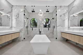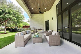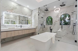 Stunning & fully remodeled home nestled in one of the most sought-after gated communities in Davie. Every detail was well thought out with impeccable taste. Over 5,000 sqft of living area featuring 5 beds, 6 full baths, an elegant glass door office & theater room. Get greeted by high ceilings & natural light. The floor to ceiling fireplace wall creates a striking focal point. Beautiful gray porcelain floors & wood-look tile upstairs. All new impact windows. New gourmet kitchen featuring a seamless design with Led lighting, porcelain countertops perfectly matching the custom wooden cabinets. Primary suite featuring an endless walk-in closet that leads to the flawless master bath. Modern Built-in wine display & custom bar perfect to entertain. Spacious backyard featuring a new summer kitchen