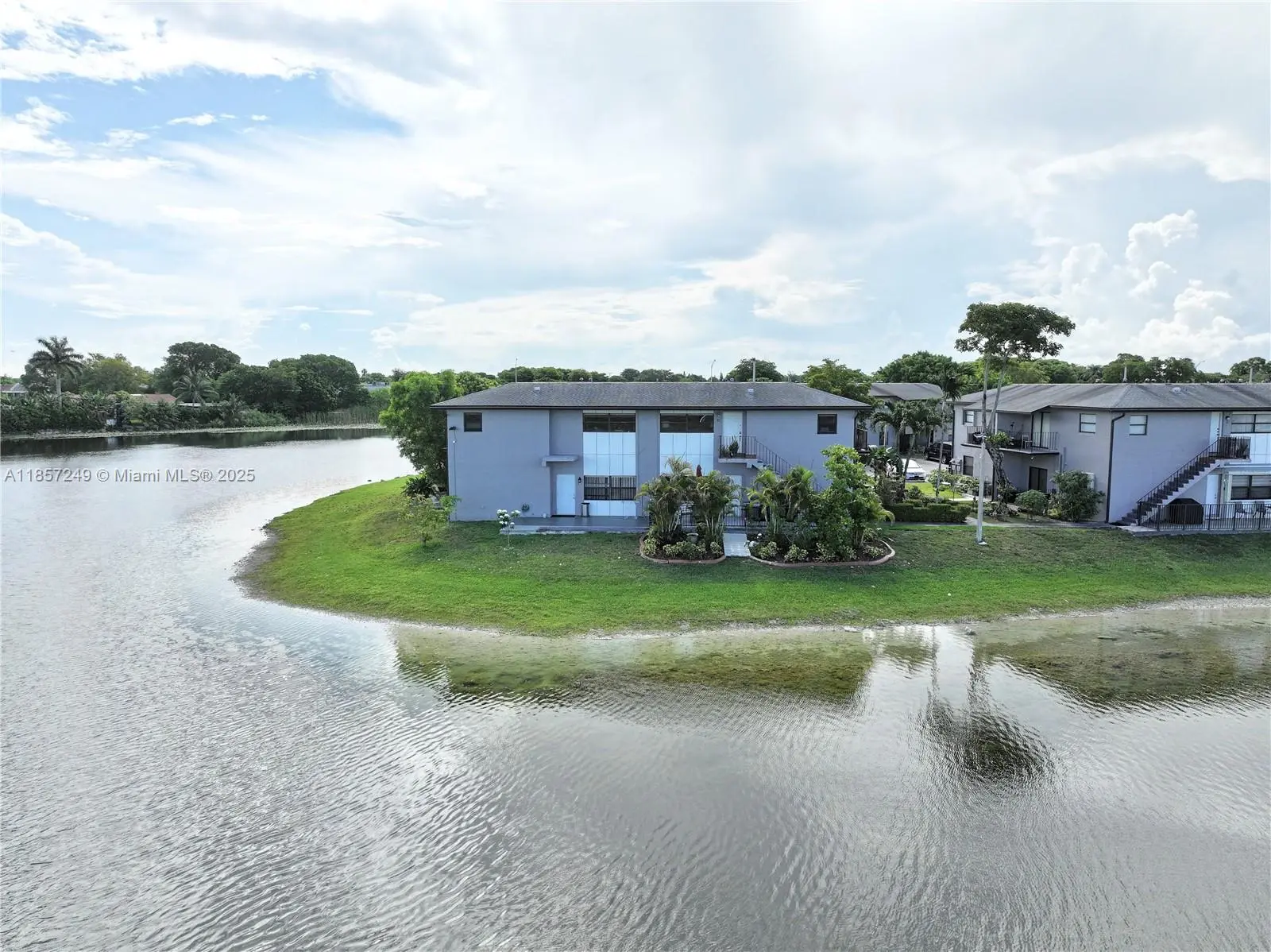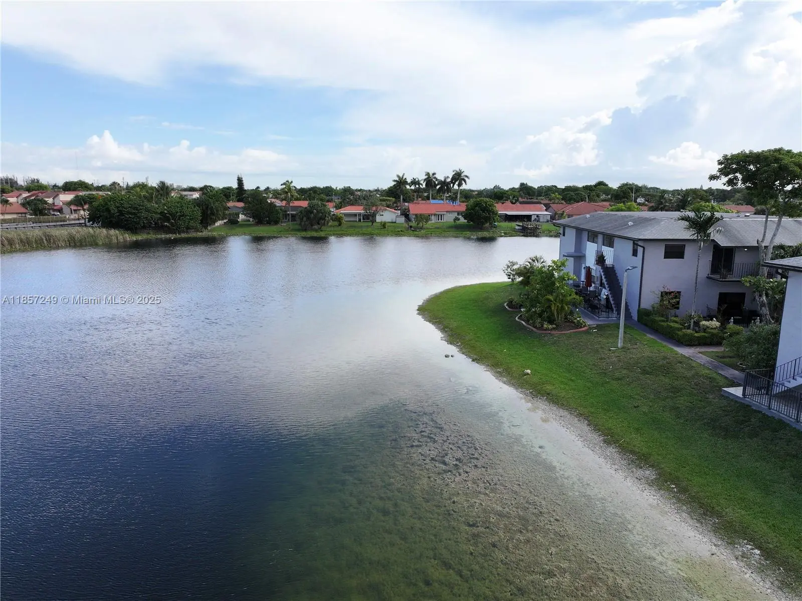 Rarely available. This is the largest unit situated in the only cul de sac within the community. Originally constructed as two units combined into one, it encompasses half of the building's second floor. The property is a corner unit boasting an impressive 1700+ square feet. The unit has been completely remodeled, featuring stainless steel appliances in the kitchen, and LED lighting throughout, complemented by ceramic flooring. This unit offers three bedrooms and two full bathrooms, with two bedroom's providing a balcony that overlooks the lake, and the sunset views are truly remarkable. Additionally, the unit includes a full laundry room. The community pool is located at the North/East corner of the property, just a few steps away