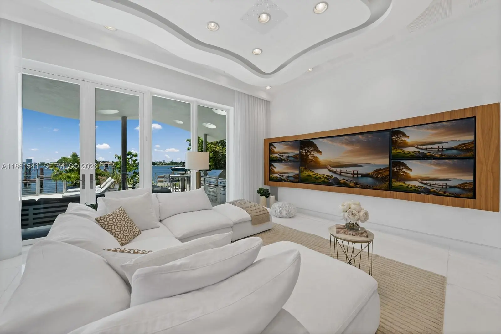 Step Inside With Me! This modern waterfront home on the gated island of Biscayne Point unveils sun-drenched interiors with unobstructed open-bay views. Thoughtfully designed, all social areas and guest spaces are arranged on a single level. Past the foyer, soaring double-height ceilings introduce bright living areas and a sleek specialty bar. The Mia Cucina gourmet kitchen highlights an oversized island with ample storage and boasts Wolf & Sub-Zero appliances. The spacious primary suite enjoys a private setting with a spa-inspired bath and sweeping water views. Outdoors, entertain effortlessly with a Summer Kitchen, infinity pool, hot tub and deep-water dock. Enhanced with advanced security, LED lighting & automation throughout, all just minutes from Bal Harbour, fine dining, & the beach.