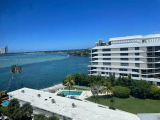 Beautiful ample 1335 sq ft corner unit with direct and unobstructed city and bay views. Very ample master bedroom and spacious 2nd bedroom with plenty of storage space. Renovated unit with porcelain floors and black granite counter tops and all new paint. In unit washer and dryer, assigned parking space. Bay side swimming pool, tiki huts, gym, clubroom. 24hrs front desk, on site management, internet and cable included and low power bills (due to refregeration tower in top of the building). A really out of the ordinary unit in impeccable condition near Bal Harbor Shops and places of worship.