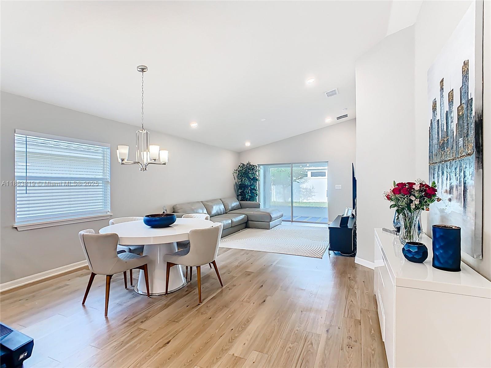 Welcome to this beautifully maintained 3BD/2BTH home w/ a 2 car garage, combining comfort, style, & modern living. The open floor plan is filled w/ natural light, creating a warm & inviting atmosphere. The spacious living & dining areas connect seamlessly to the modern kitchen, featuring granite countertops, stainless steel appliances, and a center island, perfect for everyday meals or entertaining. The private primary suite offers a true retreat with dual sinks, a walk-in closet, & a glass-enclosed shower. Additional highlights include a dedicated laundry room, & window blinds throughout, Ideally located in Davenport, this home offers easy access to shopping, dining, schools, & major highways, making it an excellent choice for both everyday living & entertaining.