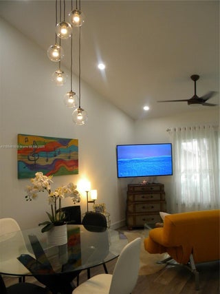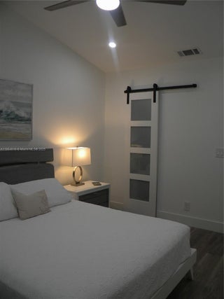 Amazing 1 bedroom unit, completely updated with nothing to spare. High ceilings, no popcorn. High baseboards, barn doors, laundry room enclosed with air conditioning and freshly painted. On demand water heater, new impact windows and sliding doors. Completely landscaped front and back. Kitchen comes with new appliances, still under warranty so are full size front loader washer and dryer. White quartz counters with waterfall effect. All LED lighting and custom-made cabinets. New bath, new ceiling fans and floors. New exhaust fan in bath and enclosed under air laundry room adding sq'. Nothing needs to be done. Beautiful lighting with Diva dimers throughout the unit. Beautiful surroundings with a complex friendly to pets, swimming pool, tennis and BBQ area by lakefront. It's a must see and make it your own.