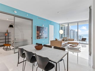 Custom residence at the iconic Aston Martin Residences, offering 2 beds + DEN with 3.5 baths. This 25th-floor home showcases floor-to-ceiling windows with city and bay views, filling the space with natural light and breathtaking vistas from every angle. The unit has been upgraded with custom millwork, completely built out closets, and drapes / blinds throughout. Designed for both style and comfort, this residence offers expansive entertaining areas and seamless flow with large entertaining spaces. Enjoy nearly an acre of world-class amenities: full-service spa, indoor pools, cold plunge, state-of-the-art fitness center, & more. Experience Miami’s premier waterfront address, where luxury meets lifestyle at every turn!