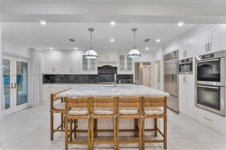 Rarely available golf course + beachside retreat! This 5 bed / 4 bath home in East Boca’s coveted Sun & Surf is one of only 16 backing Red Reef Executive Golf Course—just steps from the sand. Nestled on an oversized cul-de-sac lot off A1A, it offers unmatched privacy and luxury. Remodeled in 2017 and enhanced in 2022 with impact windows, vaulted ceilings, Calacatta marble, Wolf & Sub-Zero appliances. Two bedrooms down, three up—including a master suite with coffee bar, custom closets, and spa-inspired bath. Outside: tropical gardens, expansive patios, and a heated pool + spa create the ultimate Boca lifestyle.