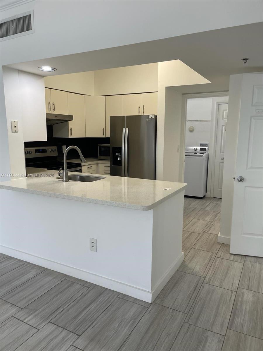 Beautiful resort style 1 bedroom, 1 bath unfurnished condo, totally remodeled at Village by the Bay, a gated and well maintained community in the heart of Aventura. Tiled floors all over, Stainless Steel Appliances, marble countertop, walk-in closet, washer and dryer, balcony facing the pool, an attached one car garage, and shutters. Community hosts a state of the art fitness center, just remodeled clubhouse, party room, 2 pools, community room, BBQ area, and tennis court. This property offers private security and a great location that is within walking distance to Synagogues, stores, parks, restaurants, supermarkets, banks, shopping centers, train stations and more. Be the first to live at this marvelous, remodeled condo.