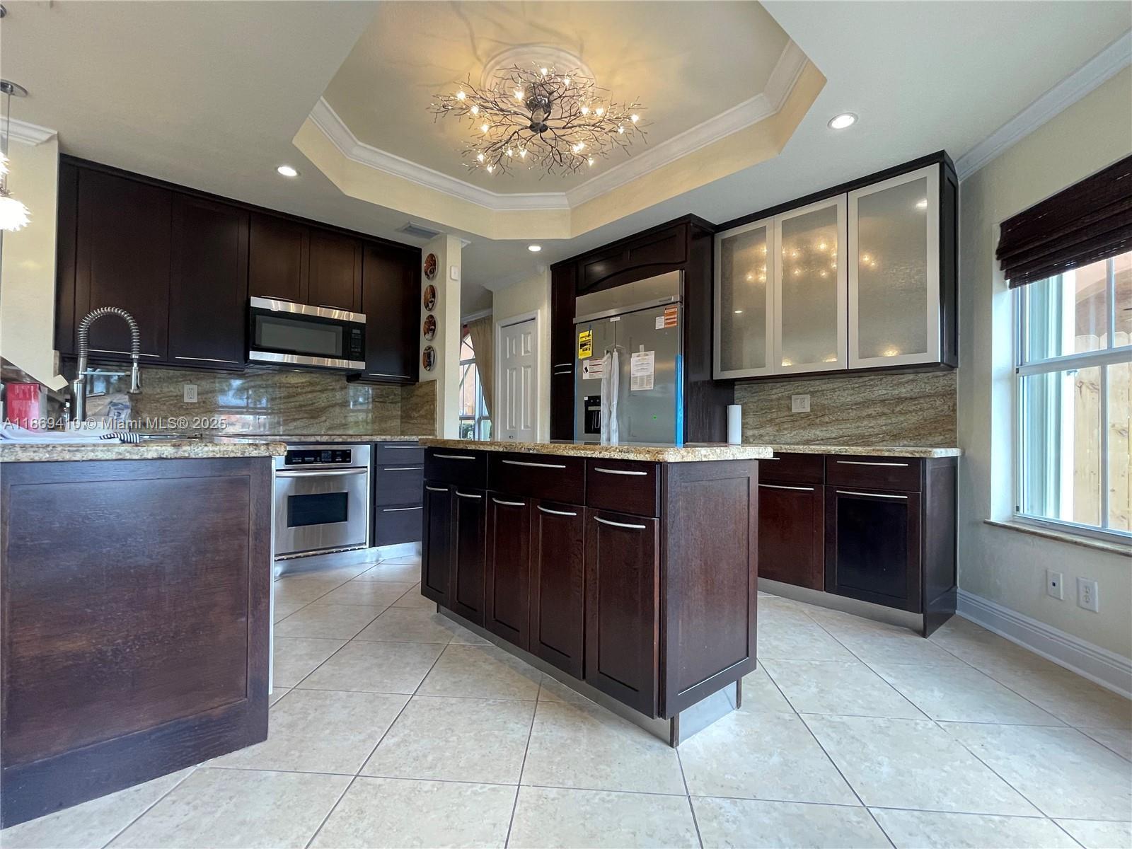 Reduced! Lakeview home in Bellagio @ Venetian Isles, a gated community with resort-style amenities! This Gem Features 5 beds/4 baths, 2 car garage, wet bar & wine chiller, huge gourmet kitchen w/ KitchenAid Sub-Zero-style fridge and island, tiled 1st floor & wood floors on 2nd floor, updated bathrooms. Enjoy lake views from the back of homes living area's terrace or the private of your master bedrooms balcony. Includes custom window treatments, and access to clubhouse, pool, gym & more. Located in a top-rated A+ school district. (5th bedroom on first floor was opened to expand living area) A must-see home in a fantastic neighborhood!