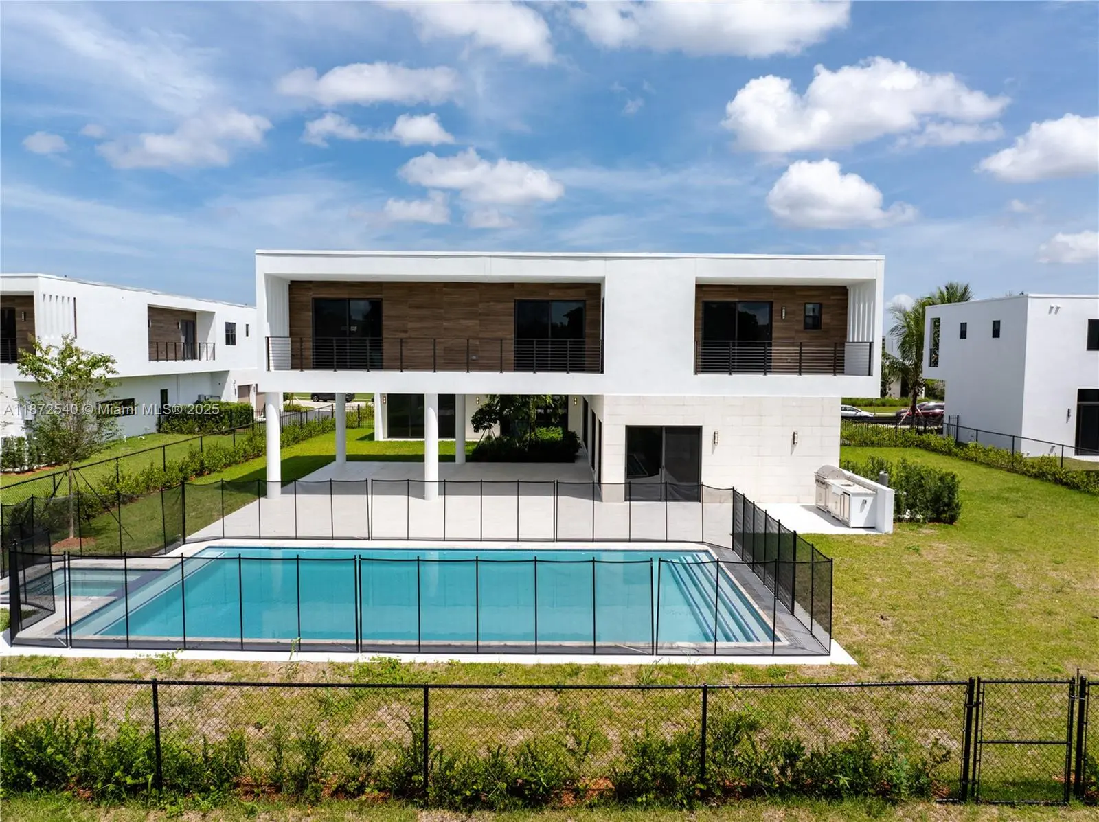 Discover elevated modern living in this redesigned O3A Model Residence at Botaniko Weston. Nestled on over half an acre, this architectural showpiece offers 6,000+ sq. ft. of sleek, sophisticated design. The home blends clean lines with bold character. Every detail has been purposefully curated from the chef’s kitchen with an oversized quartz island and premium appliances to the seamless indoor-outdoor flow. The layout includes five ensuite bedrooms, six and a half bathrooms, a private media room, executive office, maid’s quarters, and a generous three-car garage. Outdoors, the resort-style pool and spa are framed by lush, manicured landscaping, creating a serene, private escape ideal for relaxing or entertaining.