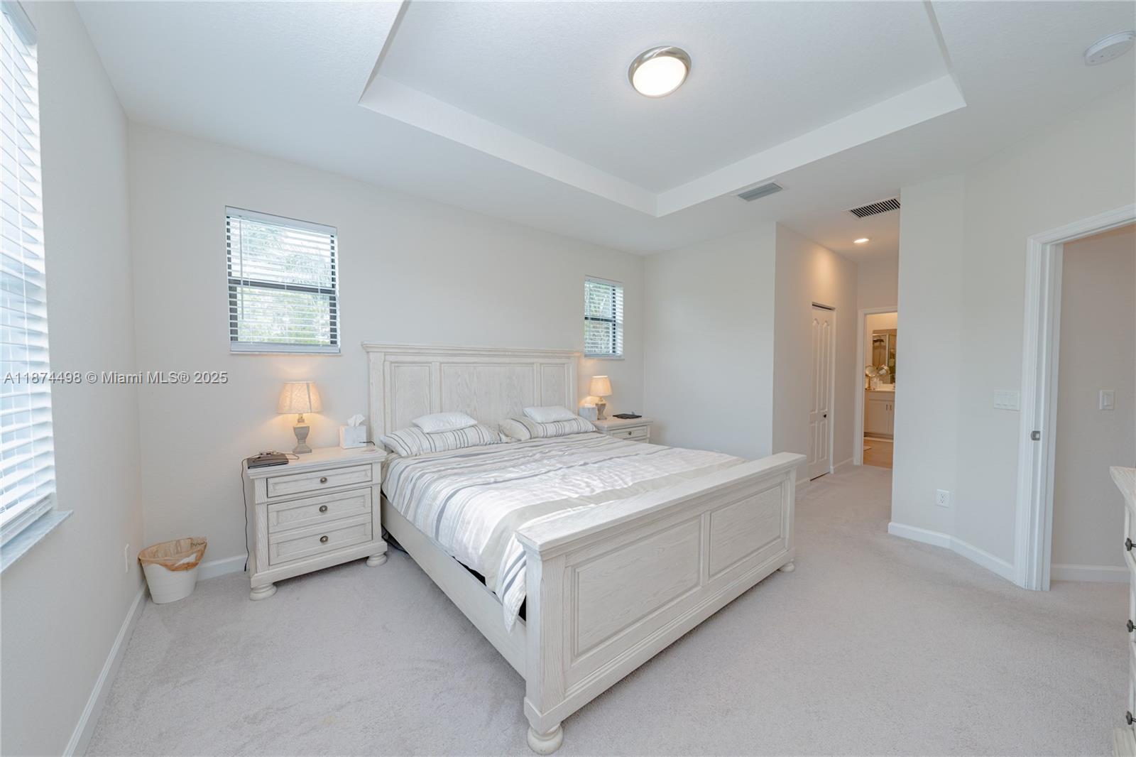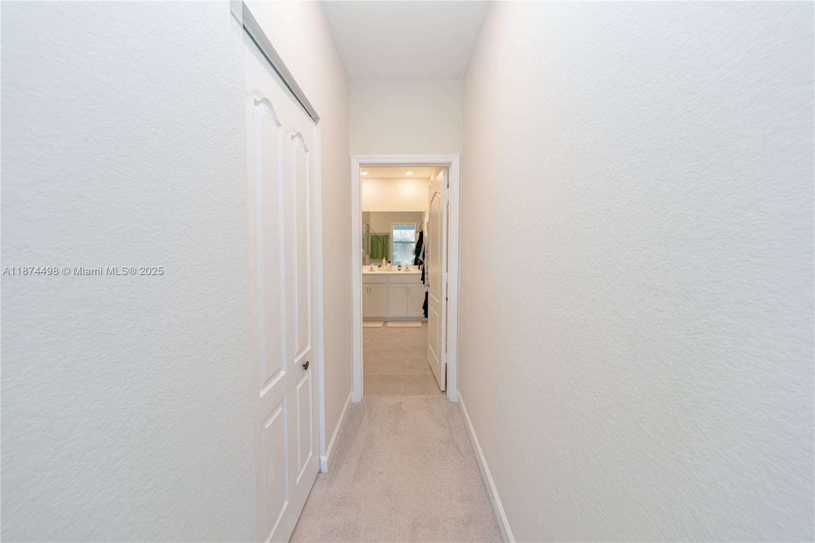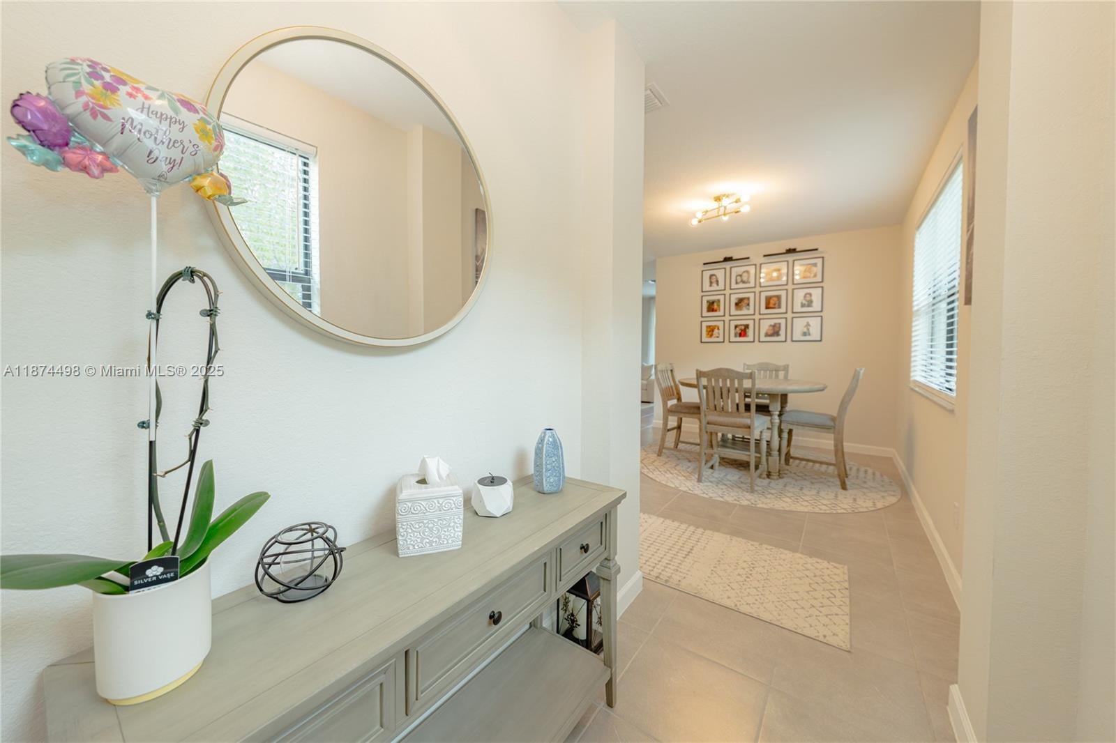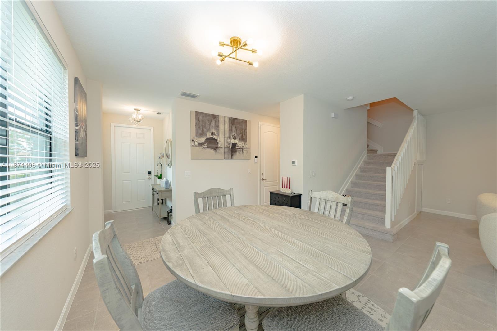 Welcome to this spacious 2,008 sq. ft. corner town home, offering 4 bedrooms and 3.5 bathrooms in the sought-after gated community of Cambria Parc. Built in 2020 with durable CBS construction and a classic Spanish-style concrete tile roof, this residence combines modern finishes with thoughtful design. Inside, you’ll find an open and comfortable floor plan with 18" x 18" ceramic tile flooring on the main level and in all bathrooms. The master suite impresses with soaring 13' ceilings, a large walk-in closet, dual vanity sinks, a separate shower, linen closet, and a relaxing soaking tub. Upstairs, the hallway includes two additional bathrooms and a convenient laundry closet with a large-capacity washer and dryer plus overhead shelving.