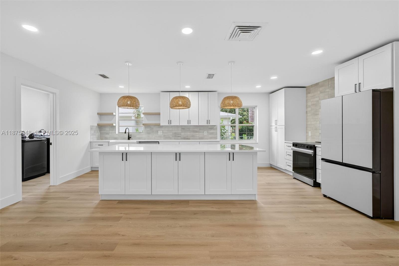 Welcome to South Port! This fully remodeled 4BR/2BA pool home with no HOA is the perfect blend of style and peace of mind. Inside, discover a brand-new designer kitchen with quartz counters, shaker cabinets, Samsung appliances, and an incredible 110" island built for entertaining. Luxury vinyl plank floors flow throughout, while a flex laundry room adds convenience. Major upgrades include new roof, impact skylights, impact sliding door, and water heater (2025), plus updated HVAC (2019). Step outside to your private saltwater pool with new skimmer, creating a backyard oasis for year-round enjoyment. Modern, move-in ready, and beautifully finished—this home delivers the best of Florida living.