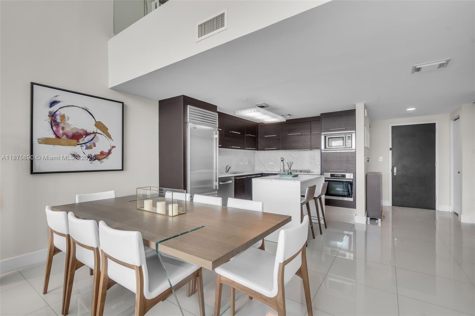Live in the heart of it all with extraordinary Downtown Miami luxury-the highest 2 story residence in the building, rising above Biscayne Bay and Miami World Center. This unique home in the sky features 3 bd+den, 3 full baths and 2 stories of living space with soaring 20ft ceilings and walls of glass framing endless water views from every rm including 2 private balconies. Impeccably remodeled showcasing sleek porcelain flooring. SS Miele and subzero appliances, electric blinds, a spa inspired primary suite for pure relaxation. The flexible den doubles as a 4th bd or private office. Resort level amenities span over 20,000 sf ft, including 2 pools, a luxury spa and sauna, yoga and aerobics , state of the art fitness centers, gardens, kids playroom, lounges, 24 hr valet, concierge and more.