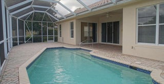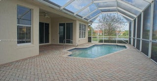 Discover the perfect lakefront retreat with a screened-in pool and Southeast exposure. This inviting home features spacious living areas, a gourmet kitchen with 42-inch cabinets, and a luxurious master suite with den, Roman tub, and walk-in closet. Enjoy cozy evenings by the gas fireplace and stunning lake views from your private backyard. Freshly painted in neutral tones, close to amenities, and set in a gated community with clubhouse, pool, gym, and tennis courts. Lawn care and cable included.