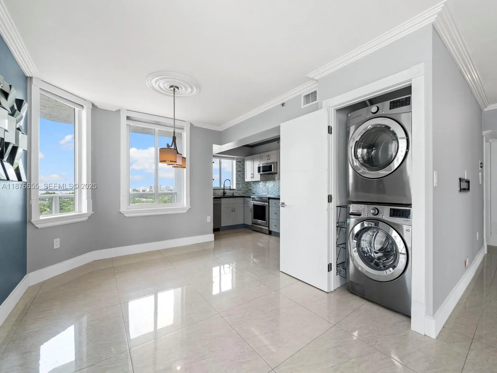 Breathtaking Views & Modern Elegance in the Heart of Miami Beach .Welcome to this fully remodeled 3-bedroom, 2-bath residence where luxury meets comfort. This luminous corner unit boasts stunning, unobstructed views of the ocean, beach, and Biscayne Bay through high-impact windows and balcony doors, exclusive private entrance from the garage and main lobby. Featuring sleek Italian floors throughout, a modern kitchen with quartz countertops and stainless steel appliances, oversized pantry and a discreetly tucked-away laundry room with a new washer and dryer. The bathrooms have been completely reimagined with elegant finishes, and the entire unit has been redesigned to maximize light, flow, and functionality. Great amenities, marina access, and prime location complete this exceptional condo
