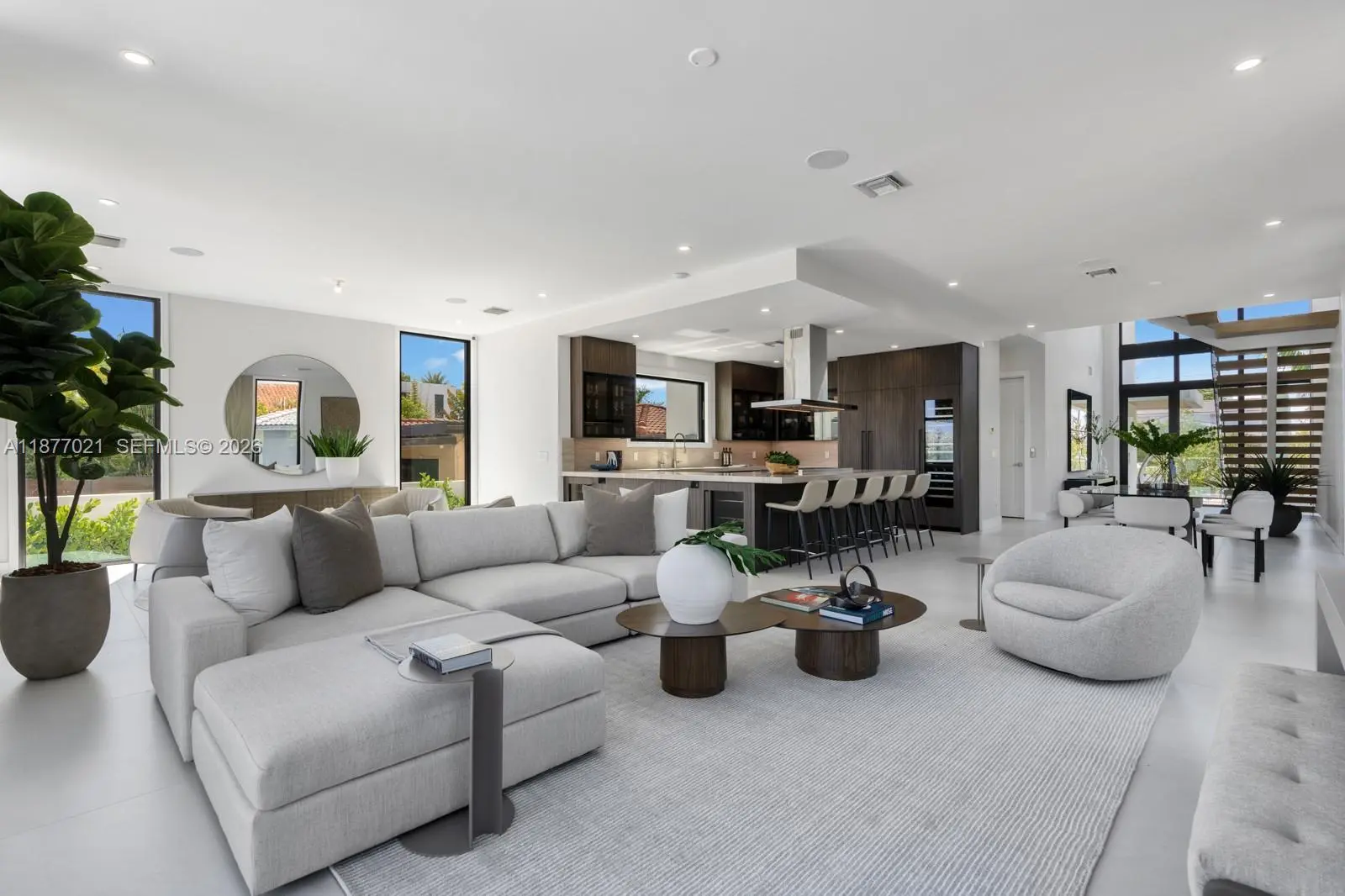 Exceptional new construction waterfront residence in a prestigious gated community with ocean access and bay views. This 5BD/5.5BA two-story home features a bright, open layout with floor-to-ceiling windows for natural light. The chef’s kitchen includes custom cabinetry, granite countertops, Thermador and Miele appliances, wine cooler, and mini fridges. The expansive primary suite offers a private terrace, dual walk-in closets with custom built-ins, and a spa-style bath with dual sinks, soaking tub, and shower. All other bedrooms are ensuite with built-in closets; one has a private terrace. Enjoy indoor-outdoor living with a heated saltwater pool, spacious patio, and private dock. Additional highlights include a 2-car garage, ample driveway parking, and elevated finishes.