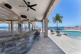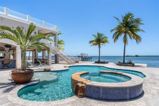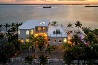 Escape to “The Castle”, a luxurious gated Gulf-front estate spanning 1.14 acres on Big Pine Key. Built in 2014 with poured concrete, impact windows/doors, elevator, and generator, this 4,600+ sq. ft. masterpiece offers 3 bedrooms, 3 baths, and breathtaking Gulf views. Boaters enjoy 235’ of dockage: 140’ protected canal dock with lift, ramp, and slip, plus 95’ open-water pier dock with lift and seawall. Inside, a chef’s kitchen with 10.5’ island, dual sinks, Jenn-Air gas range, and wood cabinetry flows to a grand family room, theater, and rooftop deck. The top-floor primary suite boasts water views, office, lounge, spa bath, and custom closet. Outside, a resort-style pool with spa, heater/chiller, and LED lighting completes this rare Florida Keys retreat.
