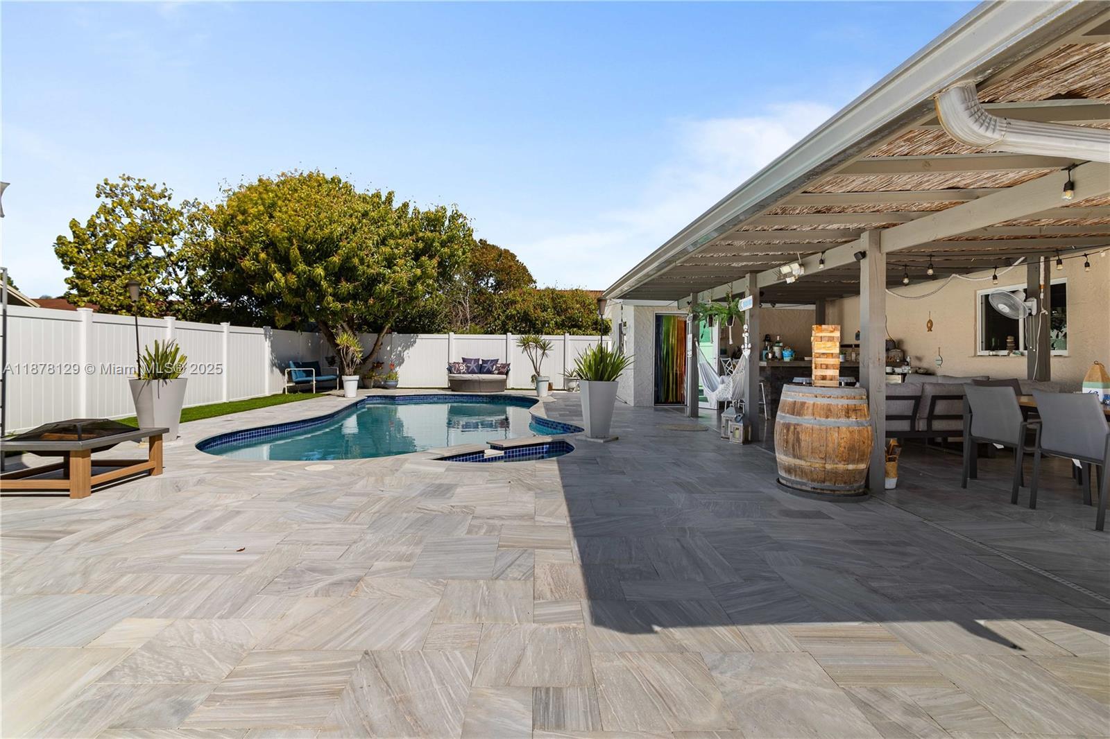 This stunning single-family home has been beautifully upgraded with a brand-new metal roof, offering both durability and modern look. The property features a potential 3rd bedroom are, currently used as the Florida entertainment area that can be converted to a 3rd BR. The exterior boasts a spacious circular driveway, providing a grand entrance with ample parking and effortless accessibility. Step inside to find a gorgeously remodeled kitchen featuring exquisite custom cabinets that blend style and functionality. The outdoor space is equally impressive, with a newly remodeled pool that serves as a private oasis—perfect for relaxation and entertaining. Complementing the home’s functionality, Every detail of this property has been thoughtfully designed to provide both luxury and practicality