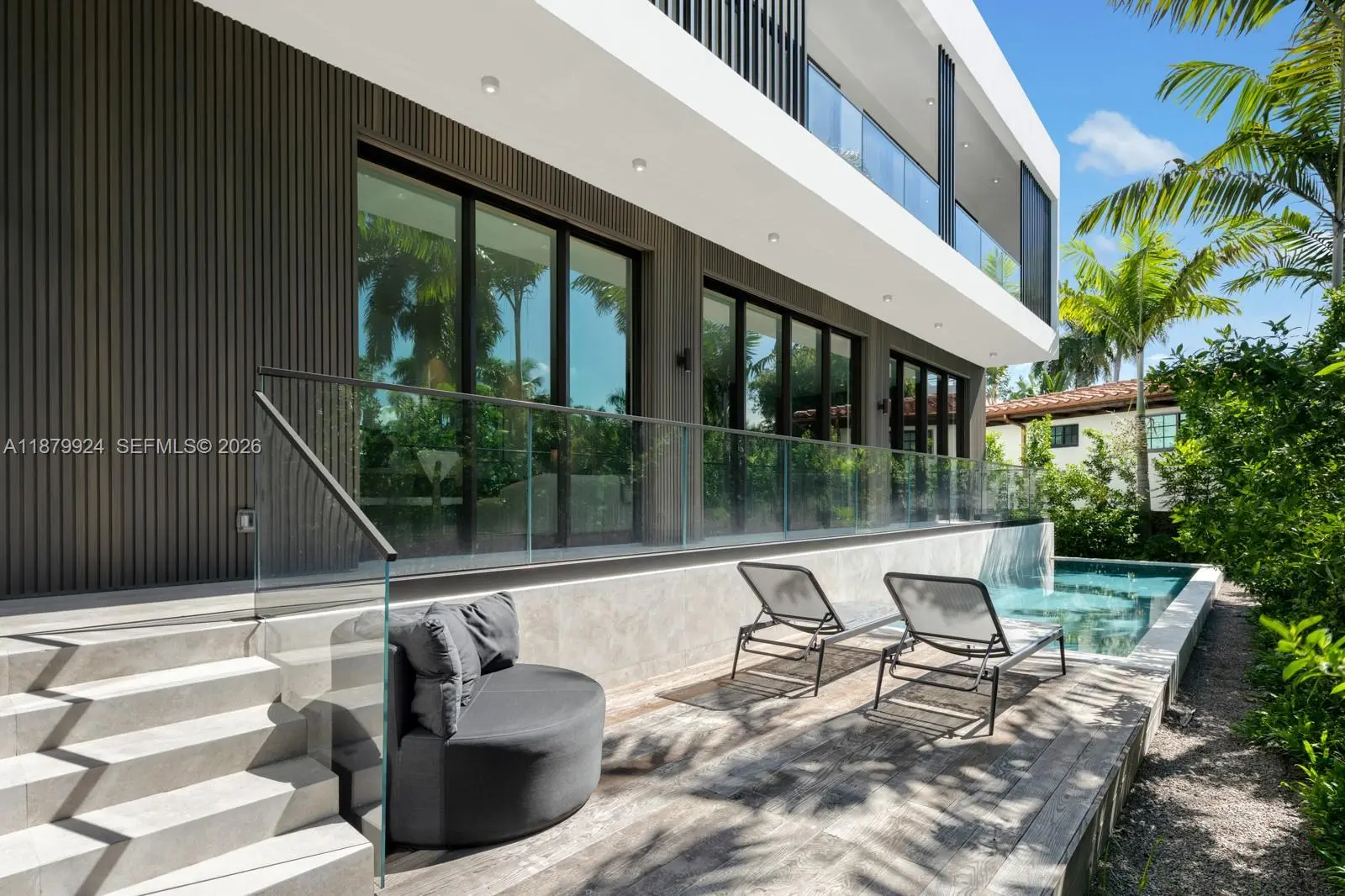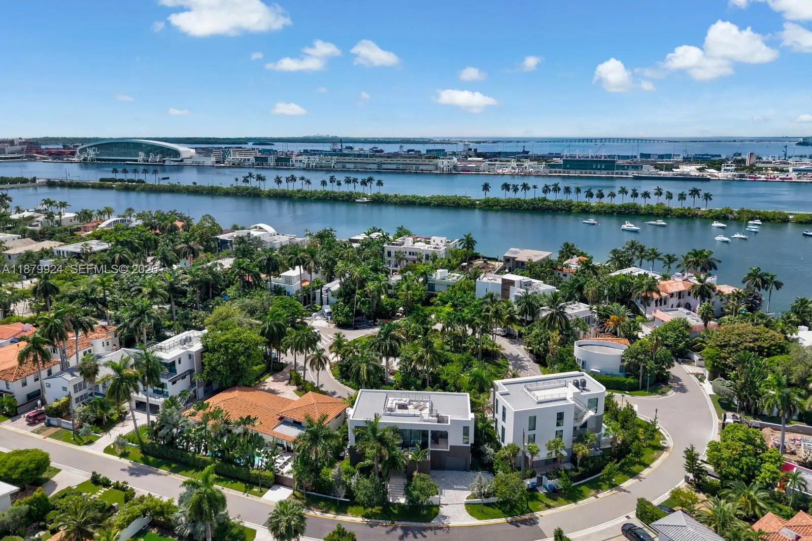 Brand new architectural masterpiece awaits on exclusive guard gated Palm Island! This stunning 4-bedroom, 4.5-bathroom home spans 3,077 square feet of contemporary luxury. The open-concept design showcases custom Italian kitchen and closets, while seamless indoor-outdoor flow leads to your private oasis - a contemporary pool embraced by tropical landscaping. Enjoy a 370-sqft rooftop deck delivering jaw-dropping water and skyline sunset views. Island perks include round-the-clock security, gated entry, buried utilities, basketball & tennis courts & children’s playground. Conveniently located just minutes away from the Best Shopping & Restaurants that South Beach, Design District & Wynwood have to offer, & cultural attractions like the Pérez Art Museum, Frost Science & Adrienne Arsht center.