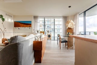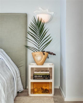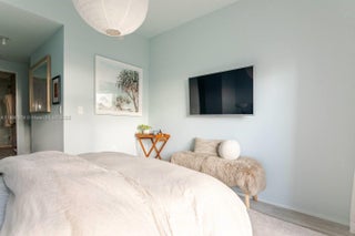 One-of-a-Kind Corner Unit with water views at Hyde Midtown. Unobstructed Biscayne Bay views in this fully renovated high-floor 3 bed / 4 bath 1,435 sq ft—floor-to-ceiling windows, corner unit at Hyde Midtown. Custom designer finishes with Italian Mireri Monticelli lighting, polished nickel and brass bathroom fixtures, built-out California Closets, and new doors. Each bath is finished in sleek microcement. The open-concept kitchen and living space with custom cabinetry, a burlwood-topped island, and direct access to your oversized balcony with bistro seating, lounge chairs, and travertine shelving, perfect for indoor/outdoor living. The main suite offers two closets, a spa-inspired bath, dual vanities, & an oversized shower. Comes with 2 deeded parking spots & a private storage unit.