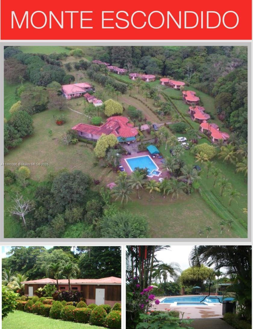 A paradise you will fall in love with this property owner motivated. Its got 20 cabanas a restaurant with capacity for 87 people a full bar near the the pool, a lake and a residential house. It has liquor license, casino license, wine and beer license the casino license has been grandfather in they don't give them out any more. Enter the name Hotel Escondido in Google Earth or the co 10°33'26"N 84°27'26"W and you can see the satellite images.Hotel Monte Escondido, 2 km north of Santa Teresa de Cutris School, Boca de Arenal, San Carlos, Alajuelense