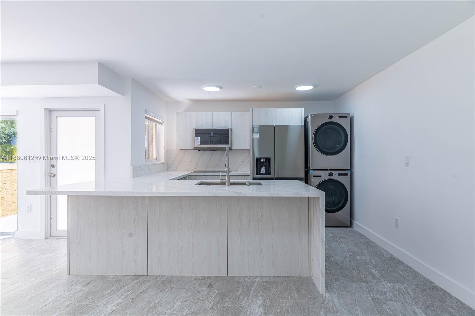 Completely renovated from top to bottom, no cost was spared and two assigned parking spots! This beautifully renovated condo townhome combines modern style with cozy living, open floorpan to maximize flow and light. Featuring impact windows and doors, along with sleek modern glass stairs, adding a touch of elegance. The open concept layout perfect for seamless living and entertaining. The gourmet kitchen is equipped with custom cabinetry, sleek countertops, and brand new appliances. Stylish bathrooms with contemporary fixtures and finishes, brand-new flooring throughout, tankless water heater and new A/C. This townhome a perfect blend of modern living and comfort. Come see it for yourself!