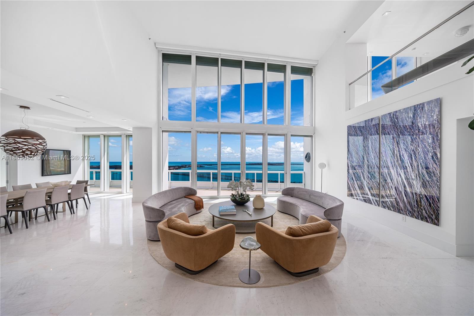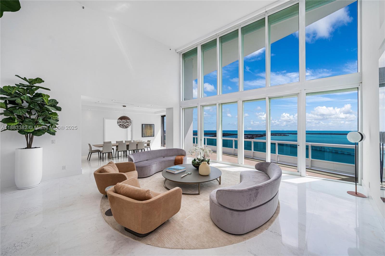 Experience unparalleled luxury in this breathtaking 2-story PENTHOUSE offering 360-degree views of Biscayne Bay & the Miami skyline. Located on the 49th & 50th floor of the highly-coveted Santa Maria building in Brickell, this 10,000 SF sky mansion features walls of dual-level floor-to-ceiling glass, multiple spacious entertaining areas, gourmet chef’s kitchen w/ butler's pantry + high-end appliances, private rooftop plunge pool w/picturesque views, & so much more! The primary suite wing boasts a terrace, dual spa-like bathrooms & walk-in closets. Amazing building amenities include a newly completed fitness center, spa, pool, tennis court, restaurant, & 24-hour concierge. Unit is offered with 4 parking spaces and a storage unit. Available short-term (6-month minimum) or annually.