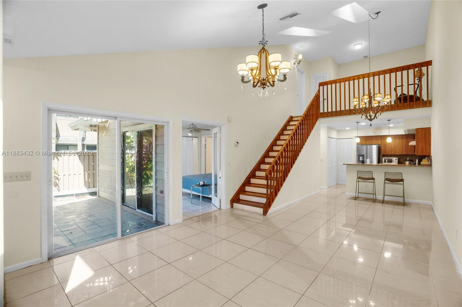 Beautifully maintained two-story corner townhome in a highly desirable, family-oriented community. Featuring a total of 3 bedrooms and 2 bathrooms, this home offers two bedrooms and one full bathroom on the first floor, complemented by soaring ceilings that fill the living areas with natural light. Upstairs, a versatile loft-style den can serve as a fourth bedroom, home office, or relaxation space. Enjoy a private, oversized patio ideal for entertaining or unwinding outdoors. The pet-friendly community boasts excellent amenities including a large pool and tennis courts, all in a prime central location close to schools, shopping, dining, and major highways.