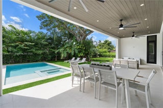 Brand-new construction by Pacheco Architecture, this contemporary-modern estate offers 6 beds plus office with 7.5 baths total 7,142 sq. ft. of construction. The grand entry with double-height ceilings opens to expansive living spaces. Massive floor-to-ceiling sliding doors lead to a covered terrace w/ fully equipped outdoor kitchen & private pool. The chef’s kitchen features top-of-the-line appliances, and an elevator connects to 4 upstairs bedrooms, including a luxurious master suite with private balcony, spa-like bath, and custom LED-lit closet. Features include a wine cellar, wet bar, 3-car garage, smart home tech, gates & lush landscaping. Perfectly located near top Miami schools, shops, dining and entertainment. Home is ideal for upscale family living and entertaining.