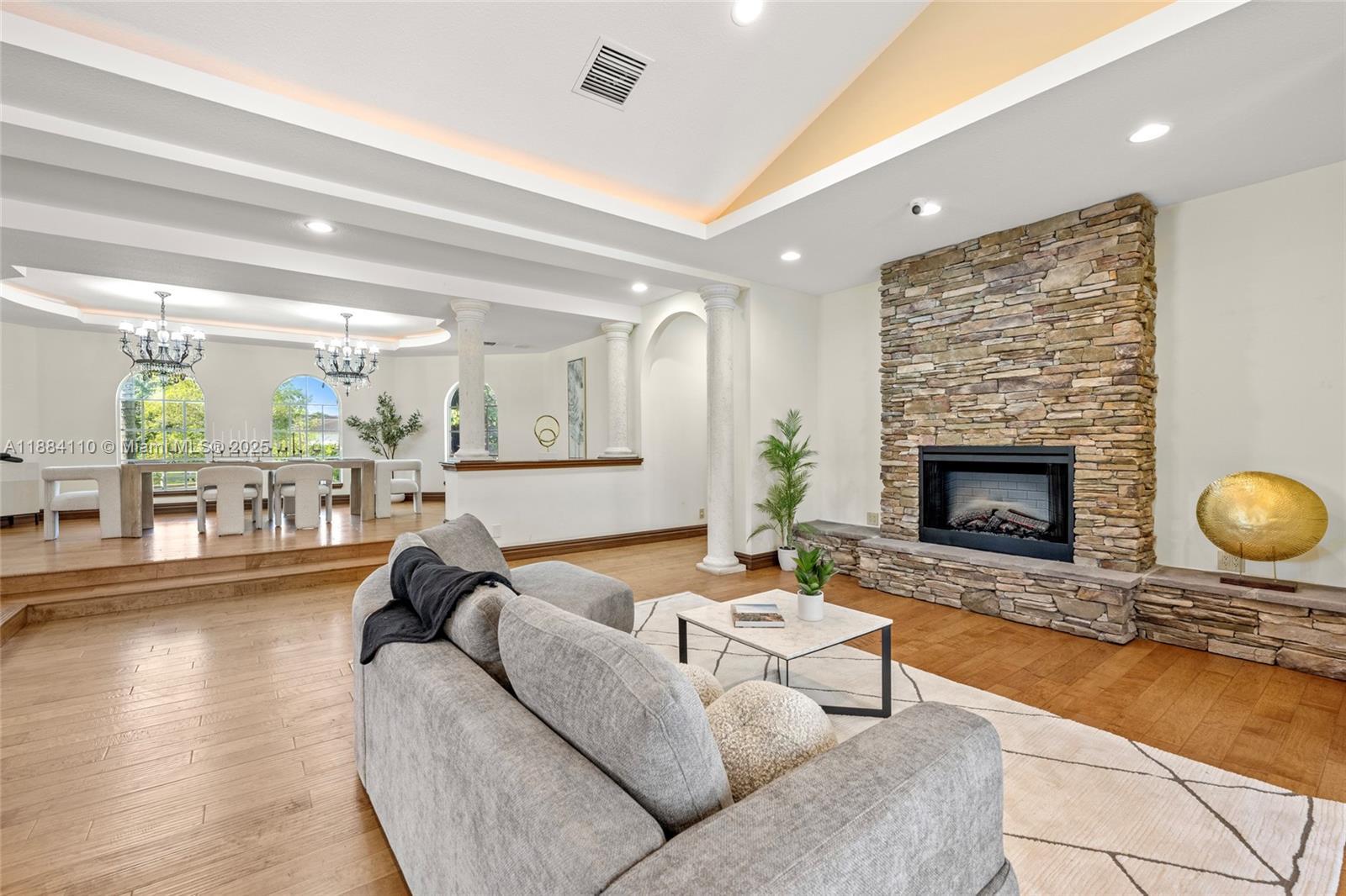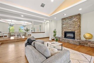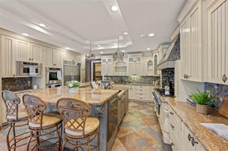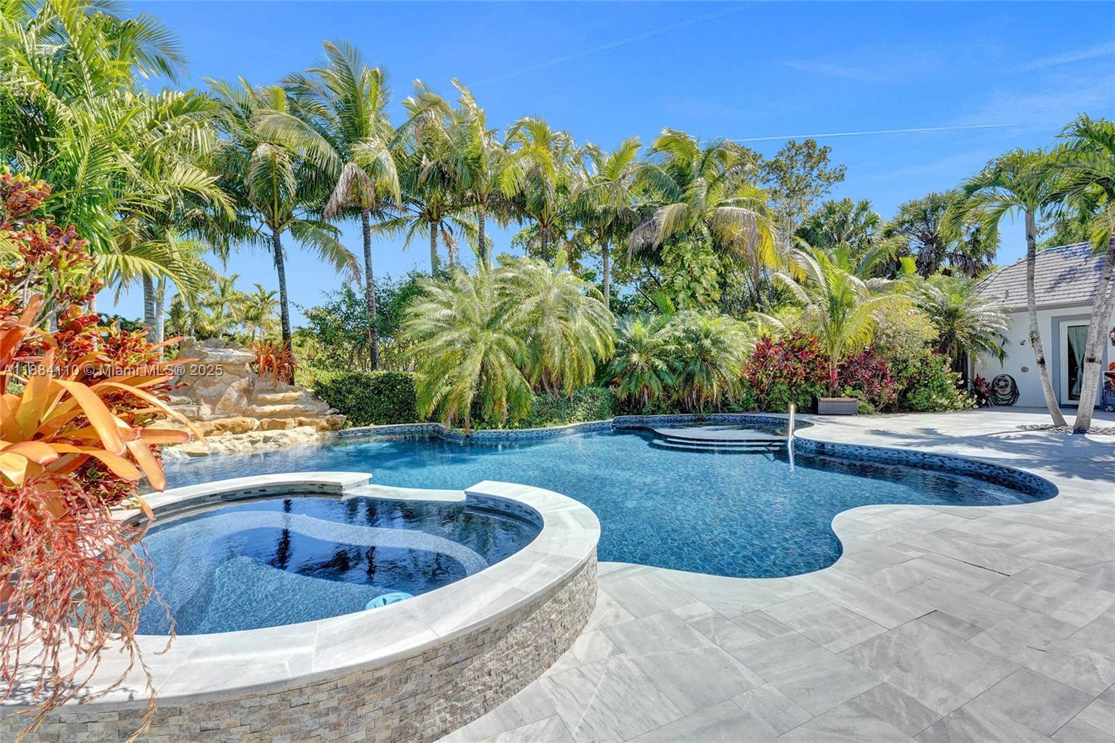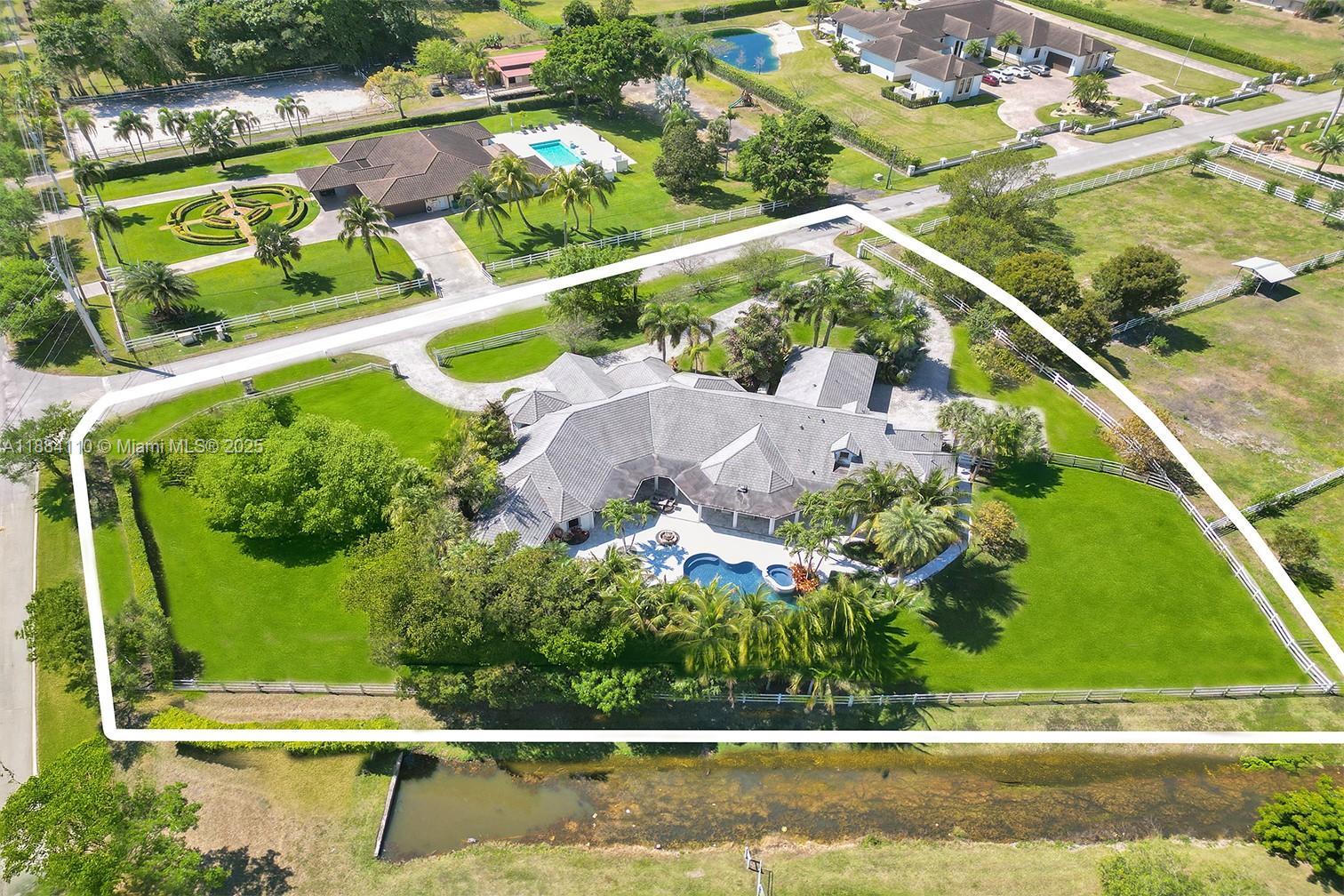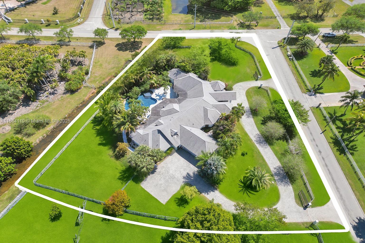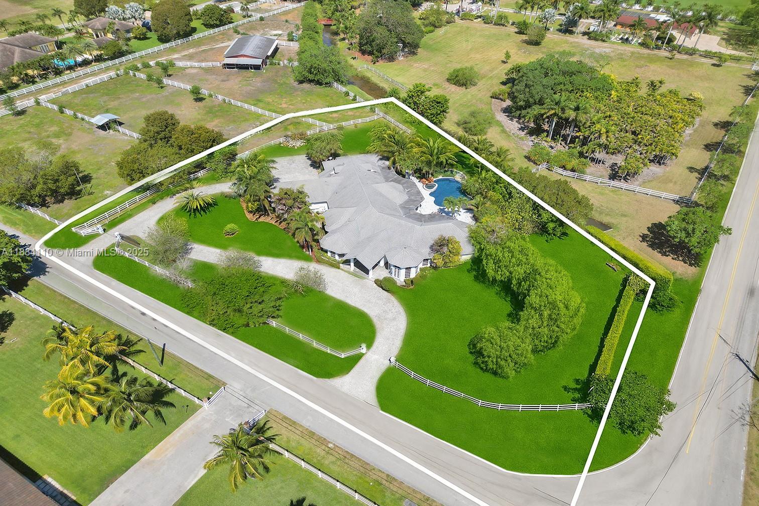 Set on 2 plus acres in Rolling Oaks, this custom 5,965-SF estate blends volume, light, and indoor-outdoor living. Built in 2007 (flat-tile roof 2008), the 4-bed/5.5-bath plan features impact glass/doors, soaring ceilings, and an open layout. Chef’s kitchen with island, premium appliances (gas range, wall oven, separate freezer), and formal/casual dining. The main-level primary suite offers a sitting area, dual closets, and a spa bath with a separate tub/shower. Flexible spaces include an office, family room, media/loft, in-law quarters, and large laundry. Outdoors: 40'×25' pool with whirlpool, summer kitchen with built-in grill, expansive patio, fruit trees, fenced grounds, circular drive, and 3-car garage. Well water; septic.