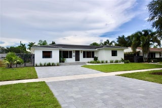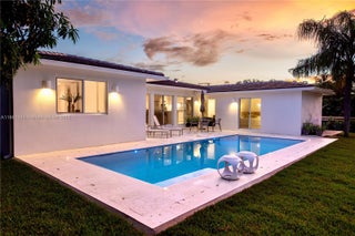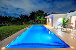This is the only totally renovated and expanded 4 bed-4 bath Miami Shores pool home on the market! Welcome to Casa Serene. This just-updated turnkey modern oasis is complete with 2,258 SF of expansive living on a grand 9,225 SF lot. Great features: open-concept layout; beautiful porcelain floors; high-end finishes; luxe chef’s eat-in island quartz kitchen; European-style cabinetry; spa-like baths; and a private quadruple-corner split floor plan. Step outside through sliding glass walls to the new sparkling pool, large entertainment patio, and lush expansive rear gardens. Everything is new: roof, A/C, plumbing, electrical, roof, appliances, kitchen, baths, floors, fixtures, and paver driveway. All in a fantastic central Miami Shores non-flood zone location on a quiet tree-lined street.