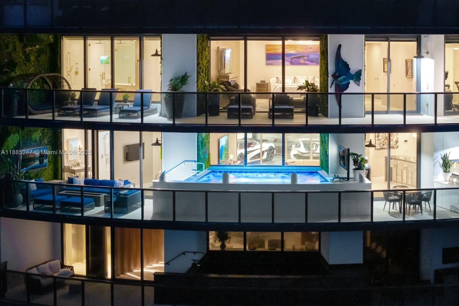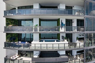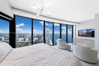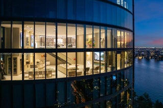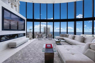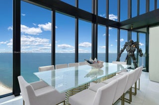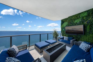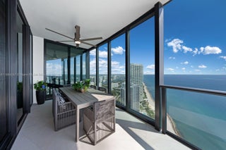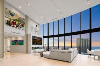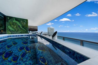 Crown Jewel Penthouse at Porsche Design Tower. This 2-level oceanfront residence features soaring 22-ft ceilings, custom wet bar, 98" Sony TV, MiaCucina kitchen with Wolf & Thermador appliances, & a striking Cetta 1800-bottle wine cellar. The primary suite includes Ornare closet, office & gym. Expansive terraces boast a mosaic-tiled pool, fire pit & summer kitchen. Fully Lutron automated Savant, 14 TVs, 3 fireplaces & 4-car sky garage with private elevator. A mansion in the sky, completely reimagined turnkey with exquisite upgrades & flawless finishes. This smart home showcases breathtaking ocean, city & Intracoastal views—set in one of the worlds most exclusive boutique buildings with unmatched privacy & the iconic Dezervator that seamlessly parks you & your car directly inside your home.