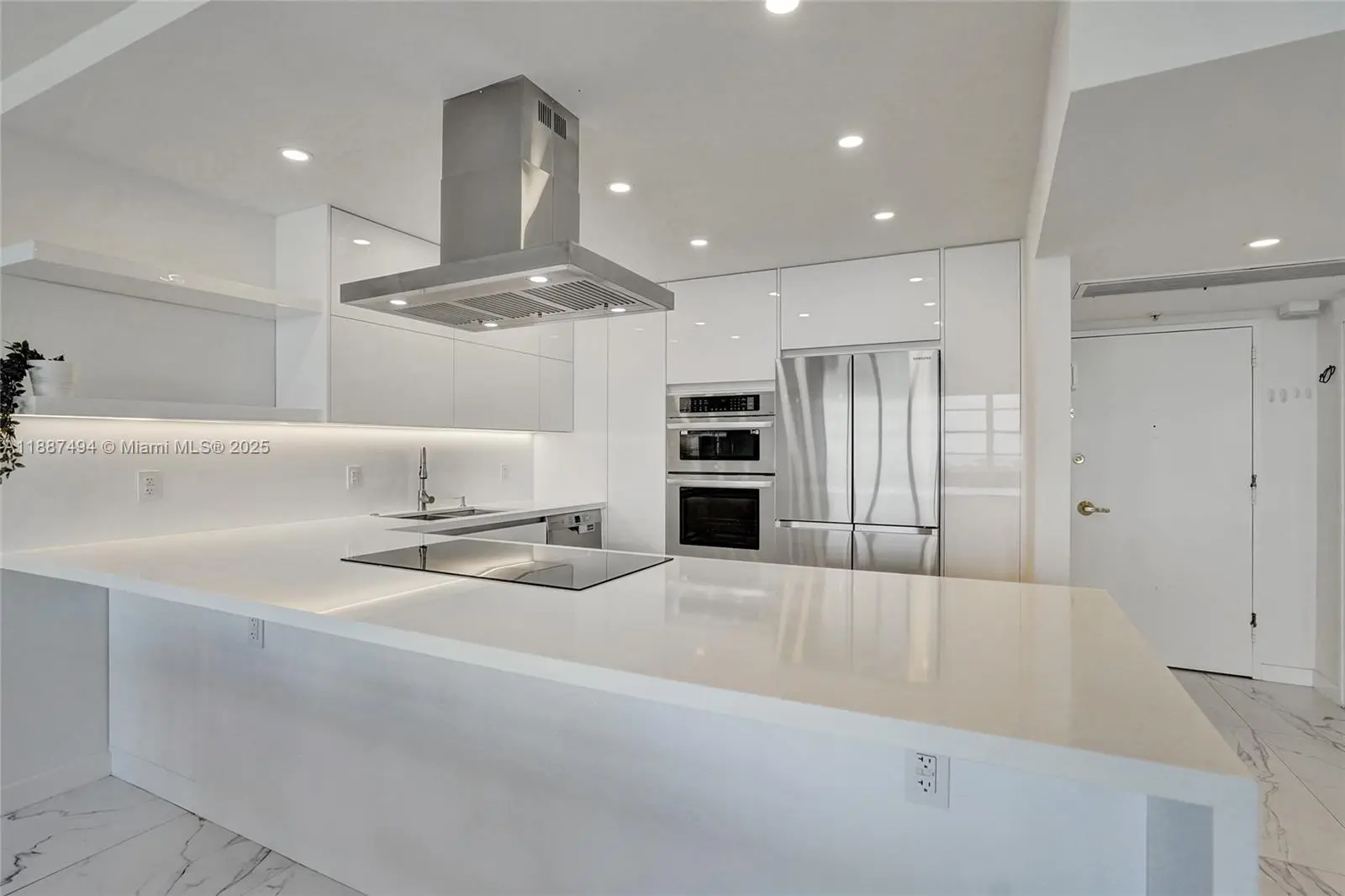 Step into luxury with this fully gut-renovated (2023) corner unit featuring 2 bed / 2 bath plus a glass-enclosed office. White porcelain floors flow throughout, enhancing the open kitchen and living space made for entertaining. A large private balcony offers seclusion with sweeping views of Biscayne Bay and the Miami skyline. Just steps from the sand, enjoy a resort-style beach escape right outside your door. This home includes covered parking and a storage unit. Amenities feature 24-hour concierge, pool, fitness center, sauna, bike room, boat slips, and kids’ playroom. Located on Miami Beach’s Millionaire’s Row, it blends modern design with an unbeatable location—balancing tranquility and South Beach energy.