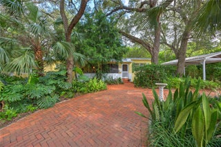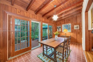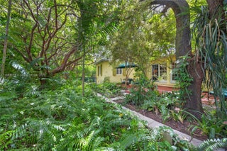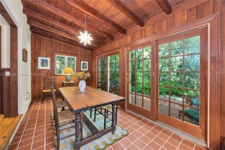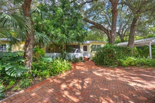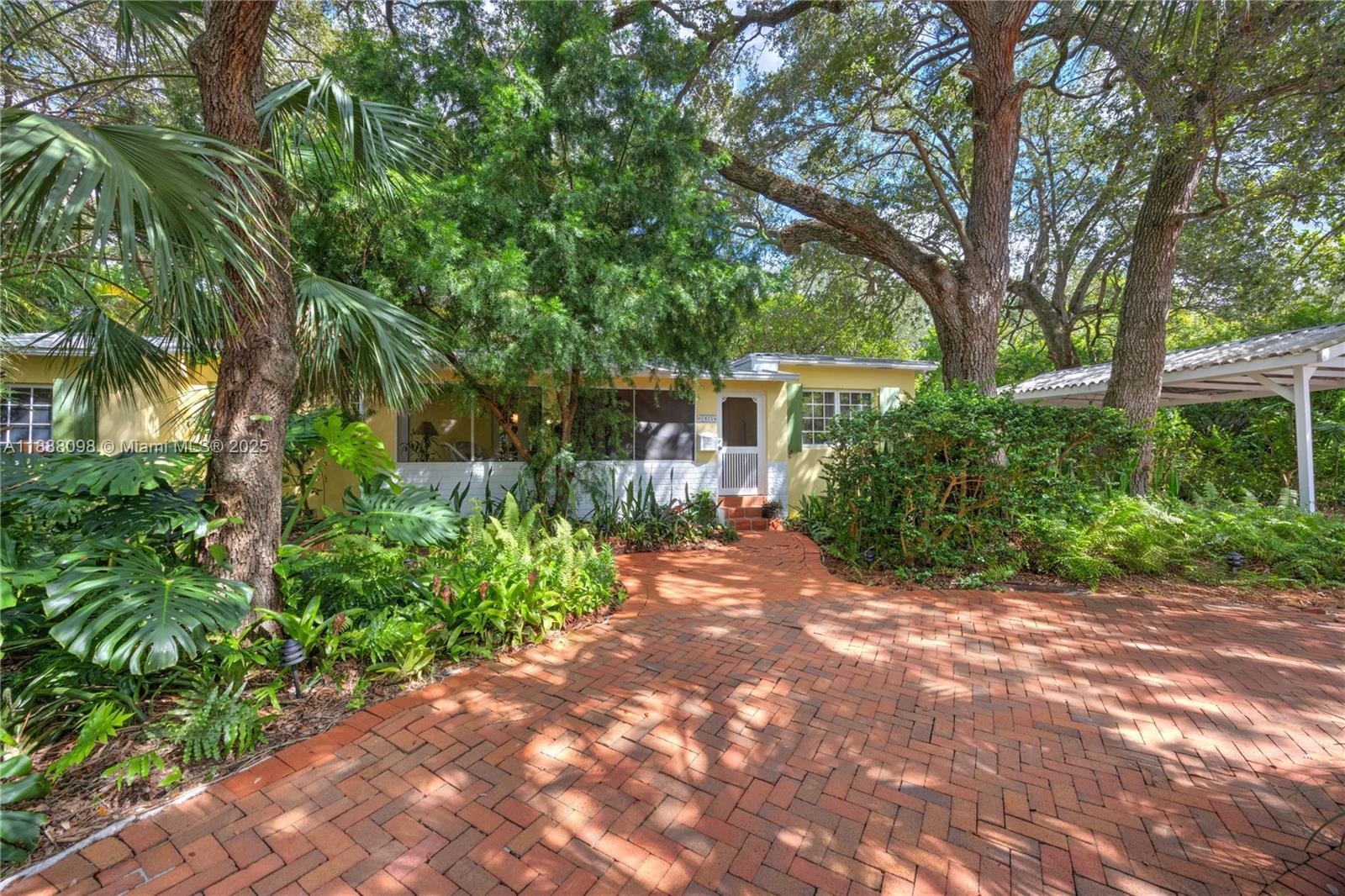 Open kitchen, dining room, split bedrooms, metal roof, circular brick drive, large back patio and carport on a quarter acre with magnificent trees and landscaping. The whimsical kitchen includes: antique leaded glass cabinets, open shelving, honed granite counters, a deep enamel sink in custom cabinet. Impeccably maintained, classic Florida vernacular design: elevated foundation, expansive windows, deep overhangs, screened porch. Metal Roof 2014; AC 2025; Drainfield 2017; newer appliances (2023), Hardwood Floors, gas range, outdoor shower, Nest thermostat and smoke detector, Landscape lighting, Native Plan Network certified yard. Within the boundaries of the Biltmore Heights neighborhood on a quiet non through street- enjoy a vibrant social neighborhood and events like a Holiday Cookie Crawl, an annual dog show, pot luck and so much more. Minutes to downtown South Miami and Coral Gables. Walking distance to UM. Wow!