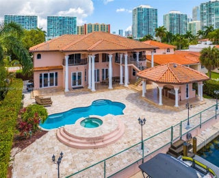 Exquisite Mediterranean waterfront home on Atlantic Isle, a secluded gem nestled between the luxury shopping destinations of Aventura and Bal Harbour. Enjoy unparalleled serenity on this oversized 14,248 sqft property featuring 5,330 sqft of spacious, high-ceiling interiors and a well-executed floor plan. Dock multiple boats in your own backyard with seamless ocean access via unobstructed waterways. The lush, massive backyard is an entertainer's dream, boasting a stunning pool and chef's outdoor kitchen. The property's grand driveway completes the luxe feel. Discover Sunny Isles Beach living at its finest. Seller financing is available.
