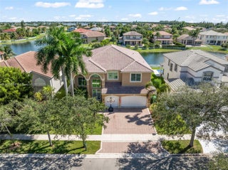 Updated 6 bedroom/4 bath lakefront residence in Sunset Lakes. Built in 2005, with over 4000 sqft of living area, 3 car garage, 8450 sqft lot, and 1 bedroom and full bath downstairs for easy accessibility. Upgrades include: impact windows and blinds, 2 new Ac's, water heater, kitchen cabinets and appliances, floors, and LED lighting.
