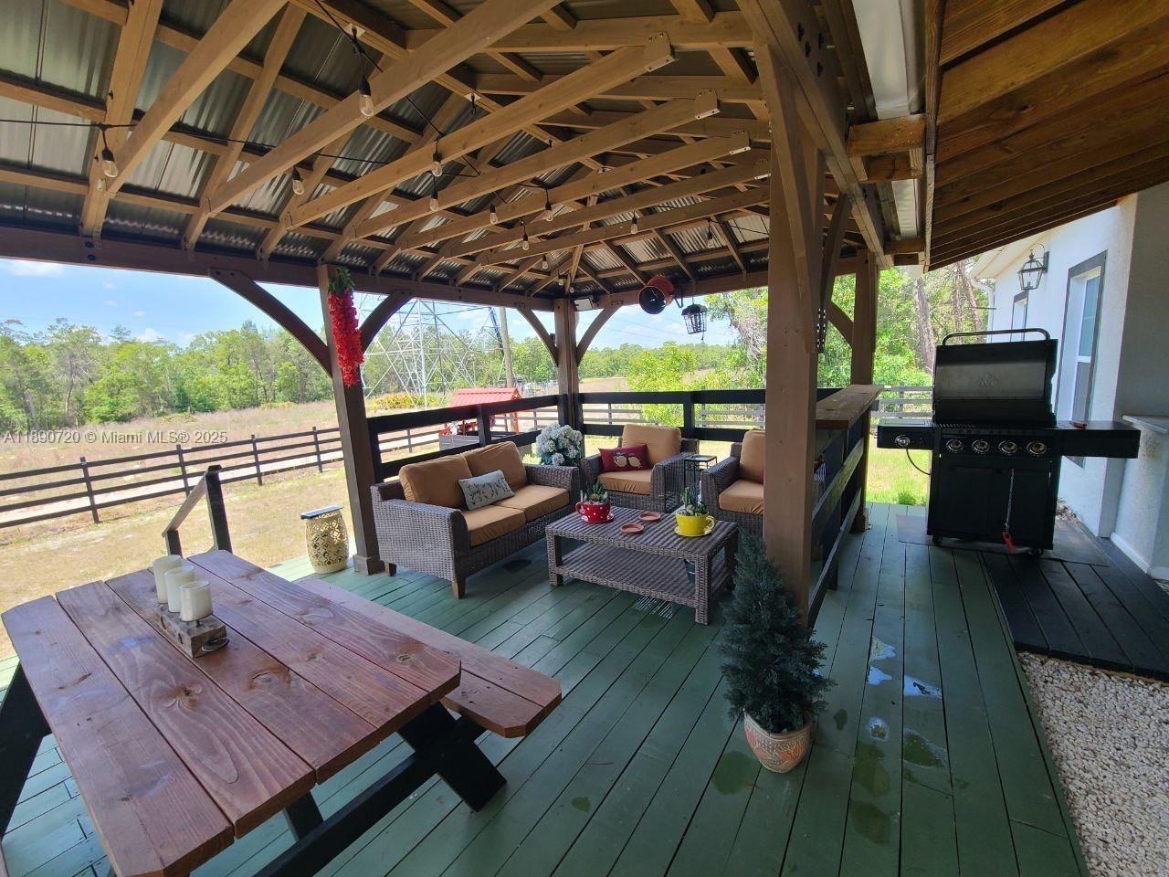 As stunning as it gets!!! 3-2 Airbnb Investment Gem! This high-rentability property features an open layout, stylish finishes; modern kitchen with SS appliances, , quartz countertops and ample cabinet space. Home completely filled with natural light, large walk-in closets and spacious bedrooms. Beautiful designer landscaping, fire pit, gazebo, property completely fenced. It may be negotiated fully furnished—perfect for entertaining and enjoying Florida country living. Located in a thriving, sought-after area.