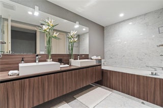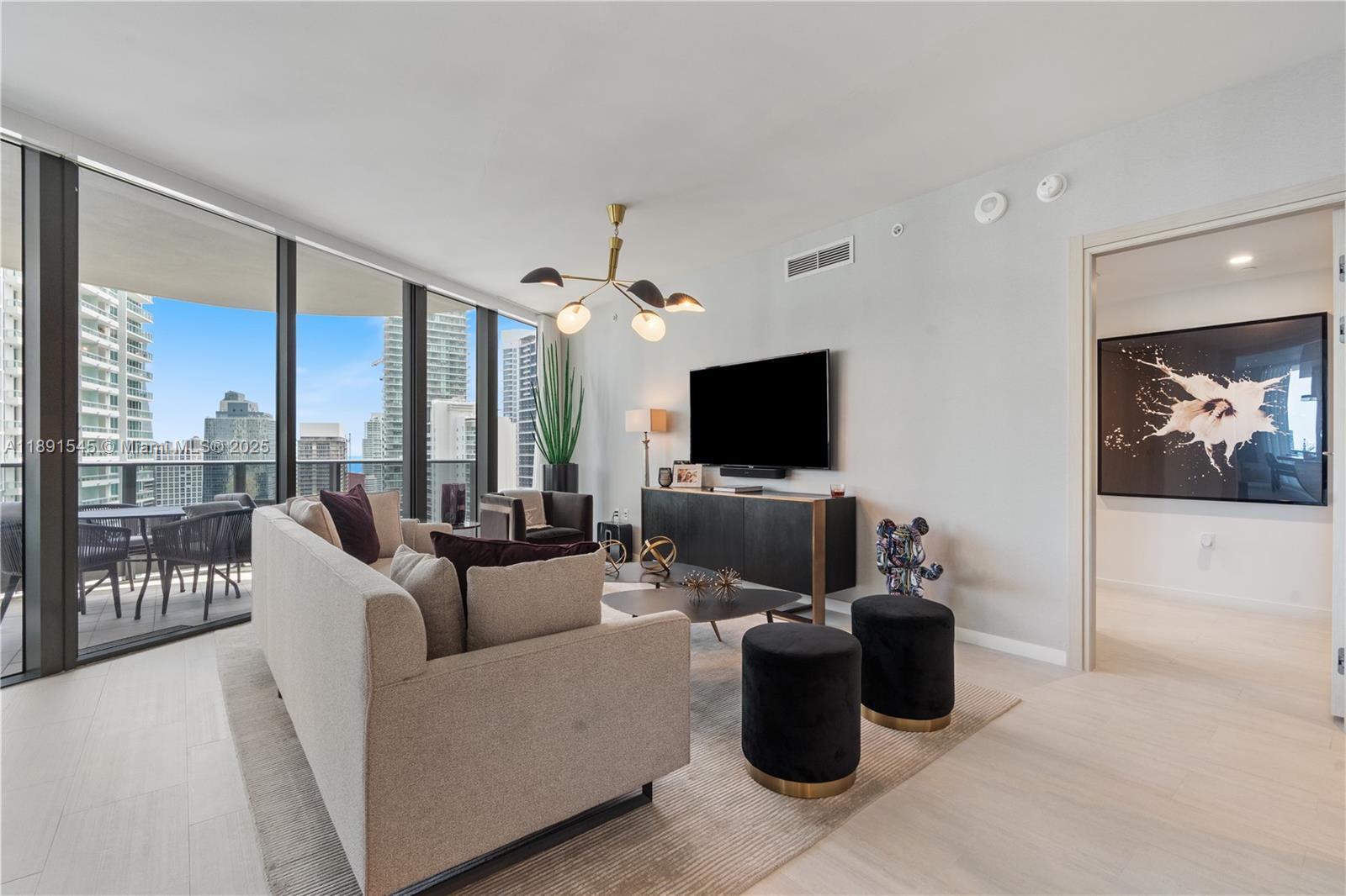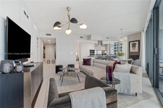 Live at the newest & most luxurious building with the highest quality and in the best location in Downtown Brickell. This 2 bedrooms and 2 baths with 1/2 bath on the 35th floor at the brand new ultra-luxurious Brickell Flatiron Condo. This unit is the 01 line; the most coveted line in the tower. With 9' ceilings and floor to ceiling glass, breathtaking views south, east, north, and west. The colorful city lights, Biscayne Bay, and views as far as Coconut Grove are yours to enjoy. Amenities include 2 Pools,2 Jacuzzis, State of the Art Fitness Center, Spa with Steam, Sauna and massage & spectacular views from the 64th level amenity floor.2 Lounges, Theatre room, billiard room, and Children room. New electric shades and brand new closets installed.