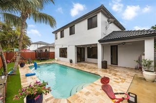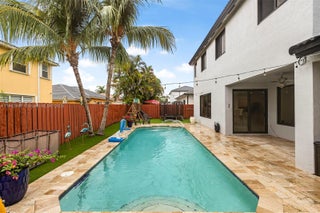 Beautiful corner pool home in a desirable neighborhood with no association. Features include a bedroom and full bath downstairs, granite kitchen, separate laundry room, and a partially converted garage ideal as an office or playroom. All doors and windows are impact-resistant. Spacious family areas. Large master suite plus two bedrooms sharing a Jack & Jill bathroom. Enjoy relaxing outdoors by the pool.